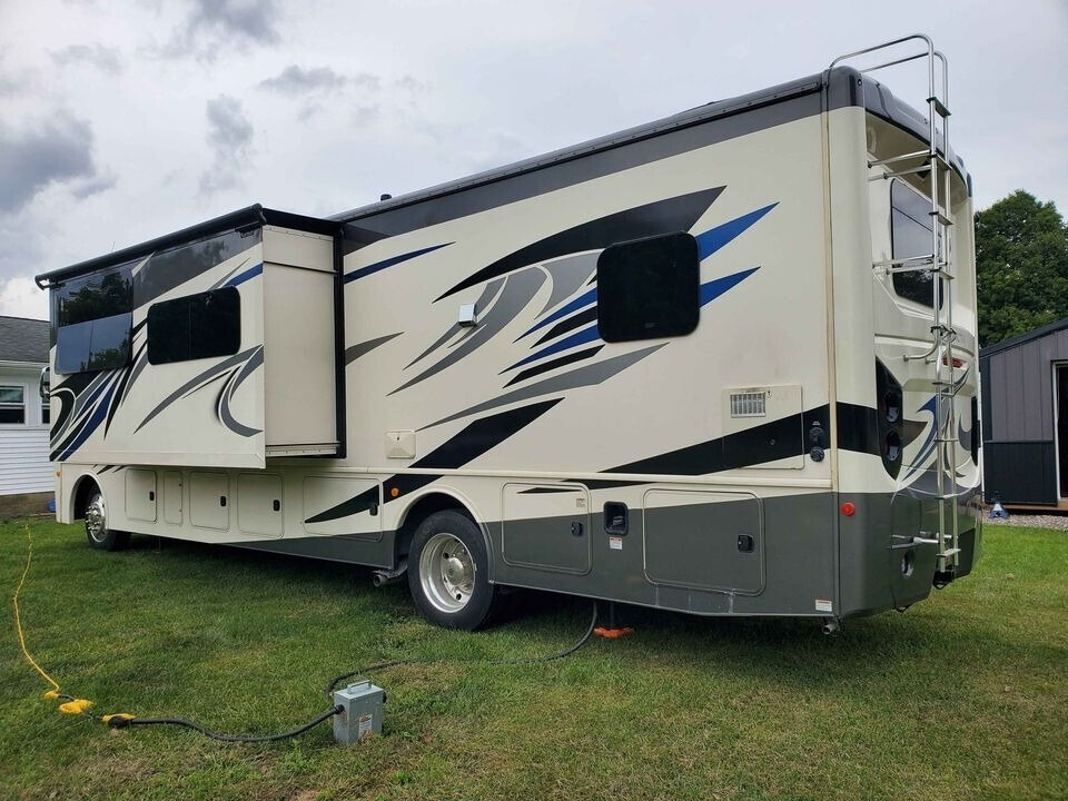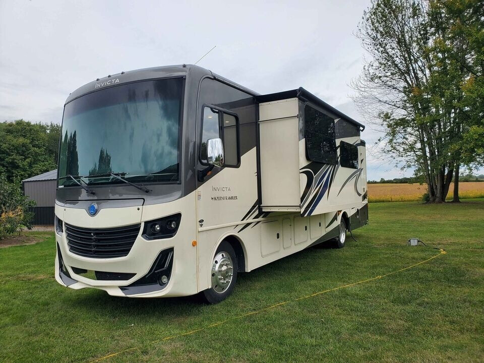 “2021 Holiday Rambler Invicta 34MB Class A RV with only 11,500 miles, perfect for your next adventure! This well-maintained motorhome features an Onan generator for reliable power on the go and an exterior entertainment setup complete with a TV, ideal for outdoor gatherings. The spacious interior includes a comfortable living area and a well-equipped kitchen, making it easy to prepare meals while traveling. The bedroom offers a king bed, although it does need a mattress to complete the setup. With its low mileage and thoughtful design, this RV is ready for new journeys and memorable experiences. Don’t miss out on the chance to own this fantastic Class A RV—it's the perfect blend of luxury and practicality!”