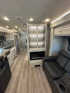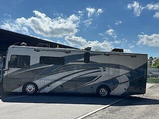 2021 Holiday Rambler Nautica 34RX Class A Diesel For Sale in Ponte Vedra, FL 32081 This Holiday Rambler is powered by a 6.7L I6 diesel engine and a 6-speed automatic transmission with 19,051 miles. The overall length is 35.33 feet and it comes equipped with 3 power retractable slide-outs, 2 power retractable awnings, 2 A/C units, a generator, an outdoor entertainment system, and plenty of room to sleep 6. This unit has been well-maintained. Kitchen/Living Area Features 2-Burner Stovetop Overhead Fan Microwave Full-Size Fridge/Freezer Sink & Faucet Booth Dinet