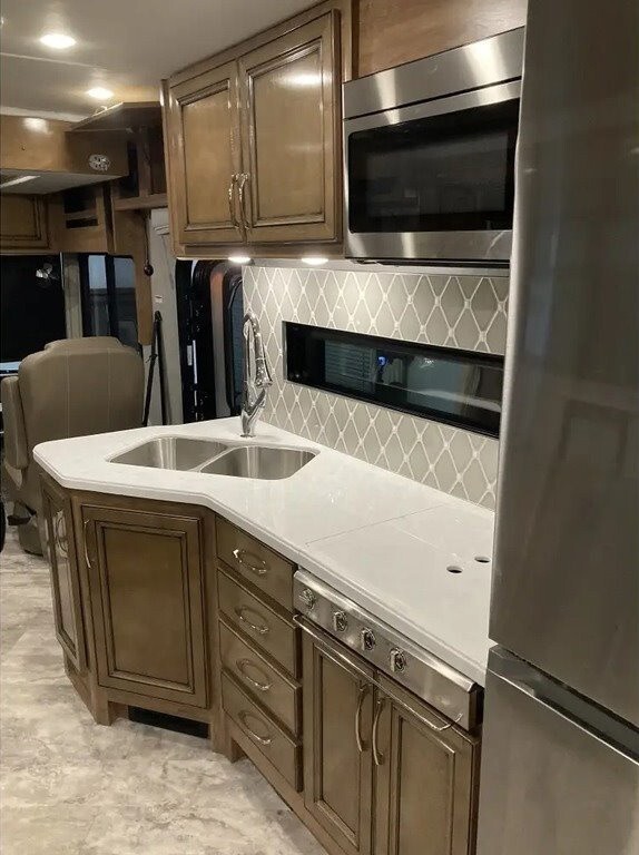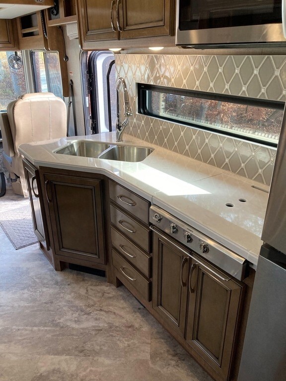 2023 Holiday Rambler Vacationer 36F Class A RV For Sale in Cumming, GA 30028 This Vacationer is powered by a 7.3L V8 engine and a 6-speed automatic transmission with just under 5,800 miles. The overall length is 38.75 feet, and it comes equipped with 2 power-retractable slide-outs, an 18-foot power awning, 2 A/C units, 2 full bathrooms, bunk beds, a fireplace, and room to sleep up to 8. This unit has been well-maintained. Kitchen/Living Area Features 3-Burner Stovetop with Cover Overhead Fan Microwave/Convection Oven Residential Fridge/Freezer Sink & Faucet Sto