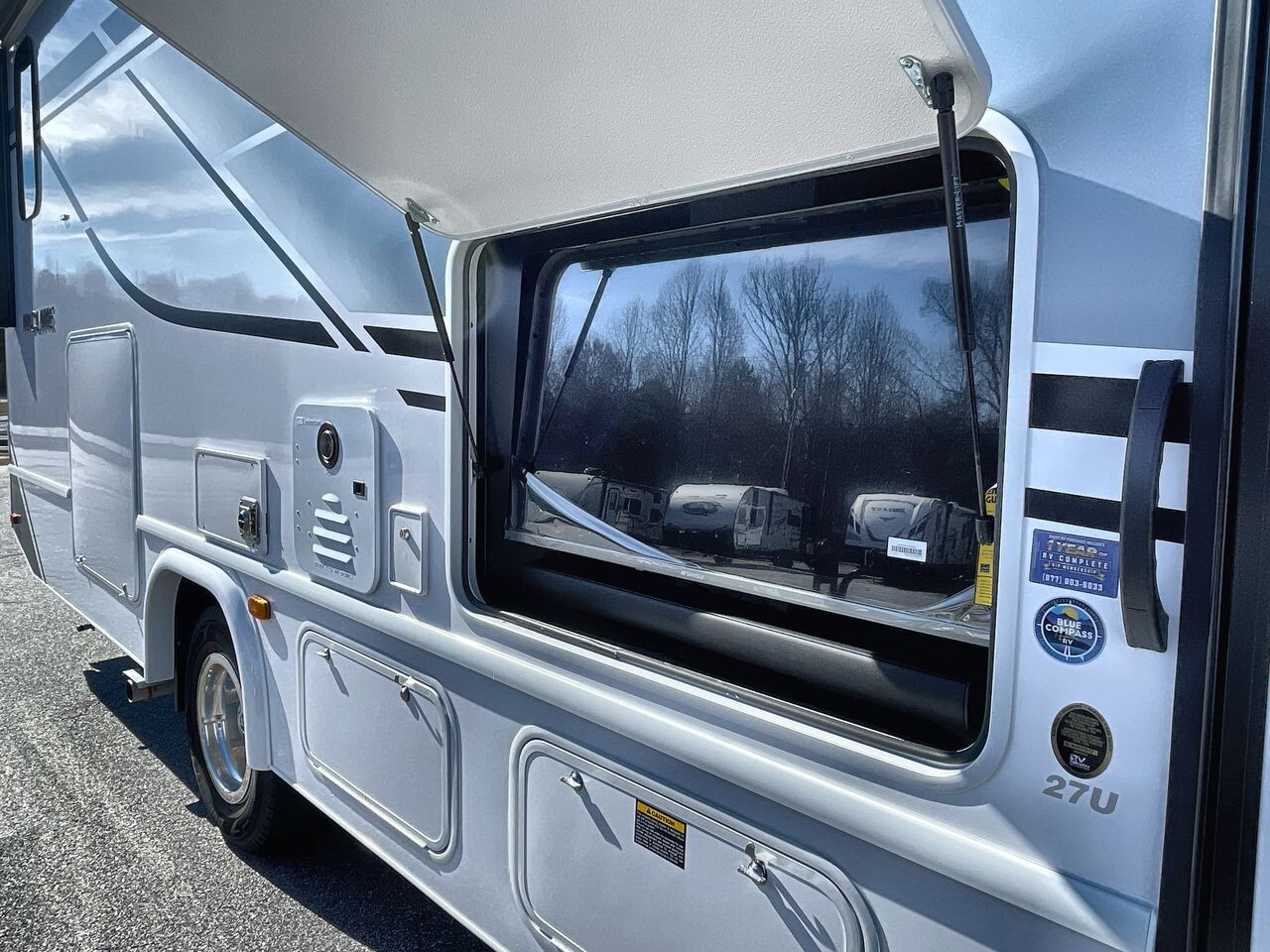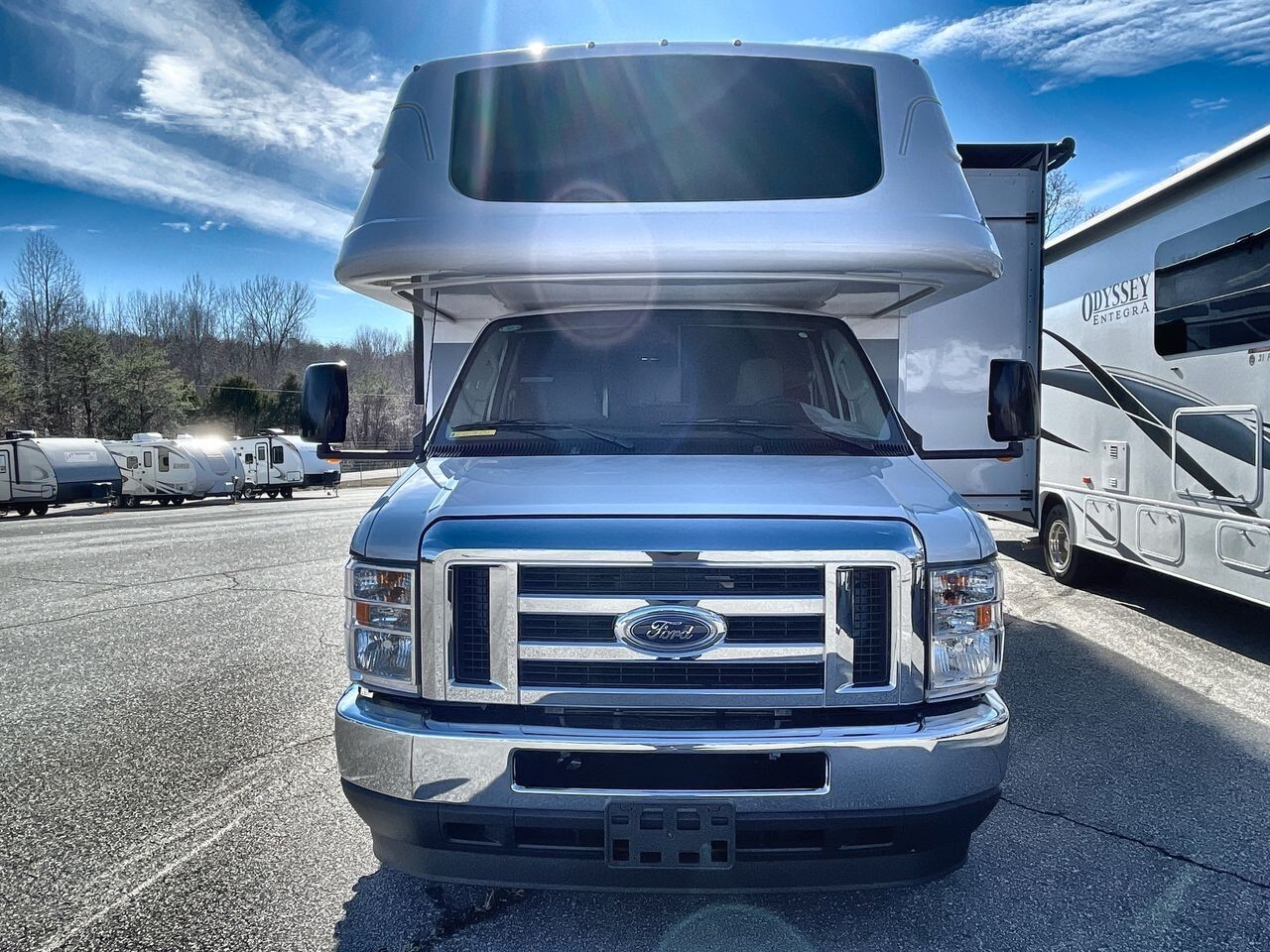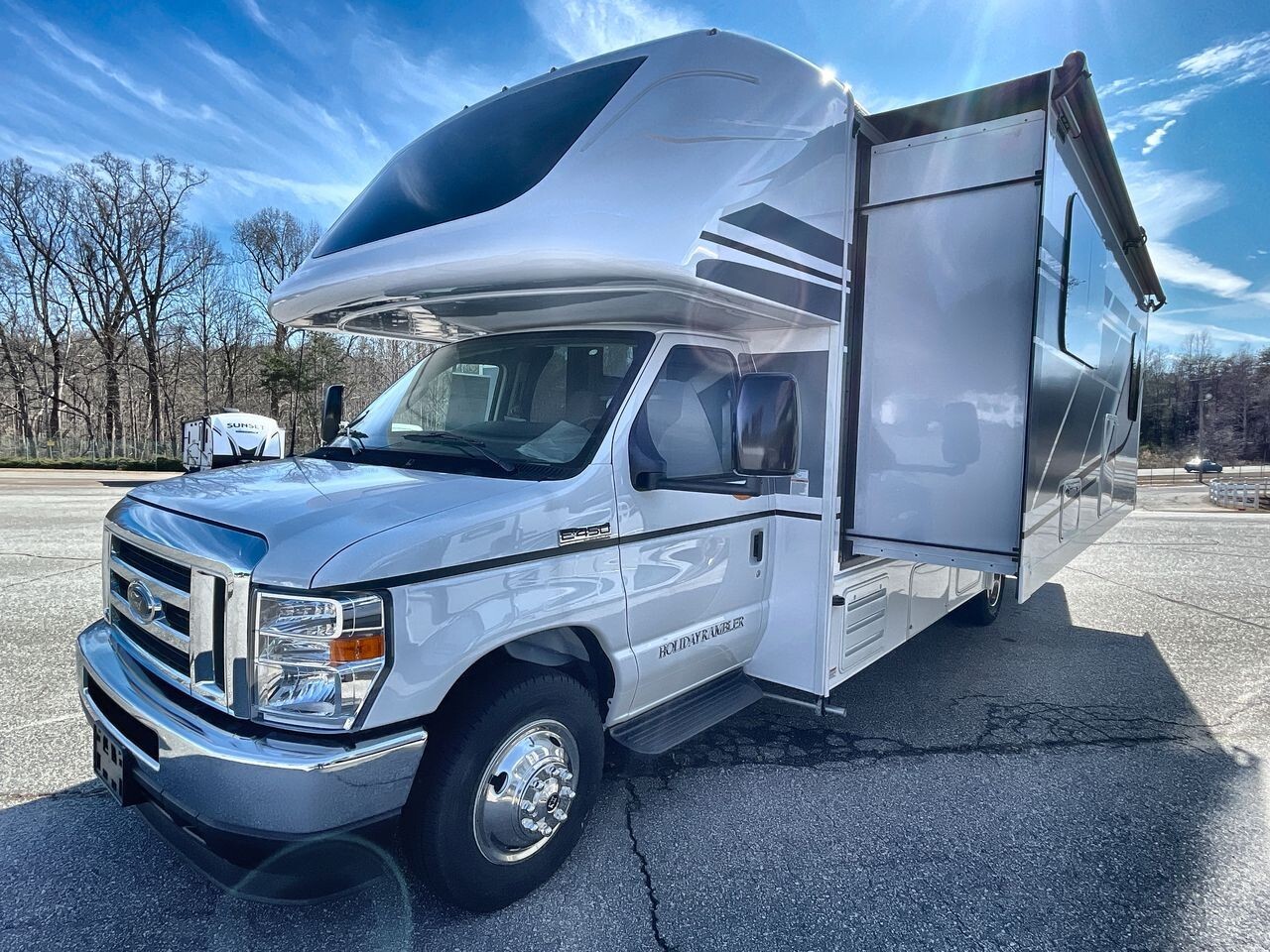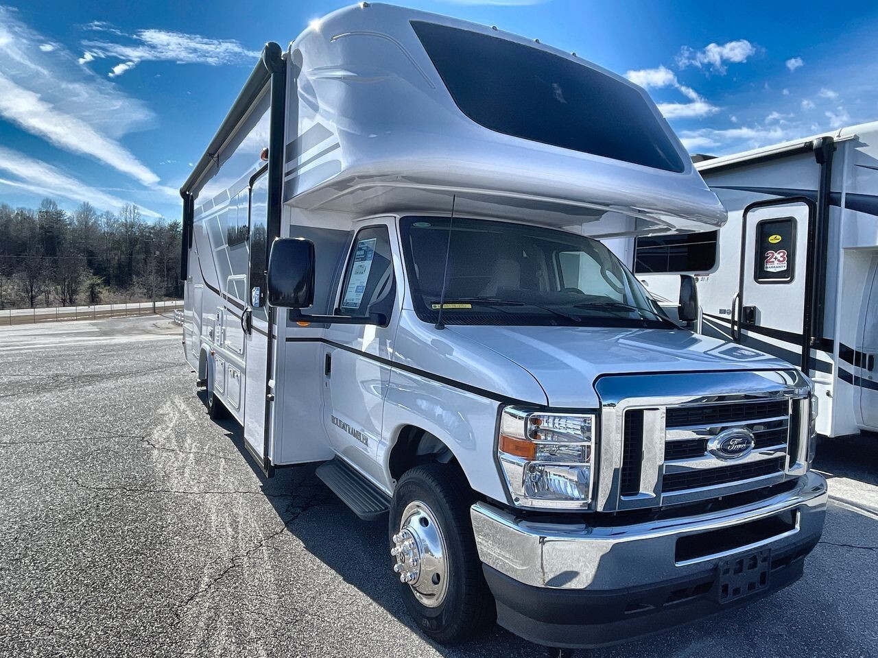 The 2025 Holiday Rambler Incline 27U is a modern Class C motorhome designed for comfort and convenience. Built on the reliable Ford E-450 chassis and powered by a 7.3L V8 engine with 325 horsepower and 450 lb-ft of torque, it offers a smooth ride for both short trips and long journeys.Measuring 29.5 feet in length, 8.5 feet in width, and 11.58 feet in height, the 27U provides a spacious interior with a 7-foot ceiling height, allowing ample room for movement. The well-planned layout includes a cozy lounge area with plush seating and a U-shaped dinette, ideal for socializing or enjoying meals. The entertainment system features two flat-screen TVs and premium speakers, offering various entertainment options on the go.The kitchen is equipped with modern appliances, including a full-size electric refrigerator, convection microwave oven, and a three-burner stove with an overhead fan, making meal preparation straightforward. Ample