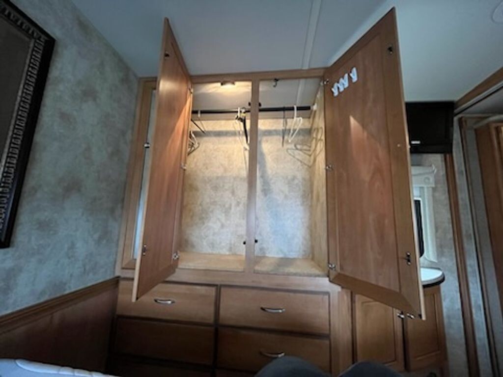 Convenient Bath & Storage: Full bathroom with shower and plenty of cabinetry for all your travel essentials.