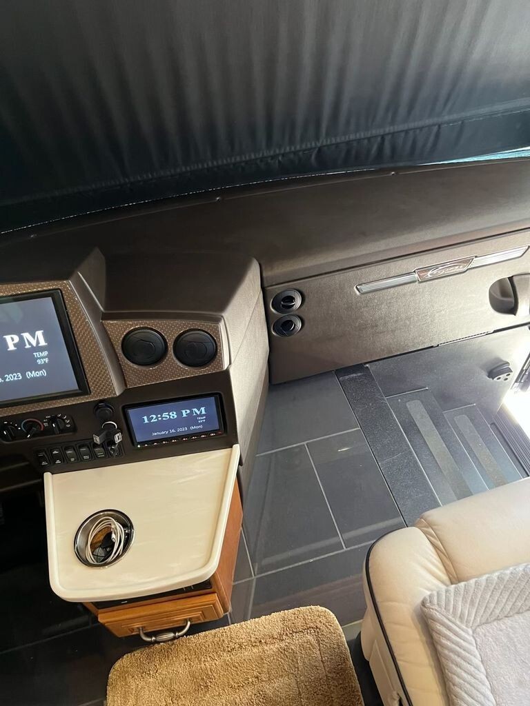 For added confidence on the road, this coach is equipped with a front camera and collision warning system, providing enhanced visibility and modern safety technology while traveling. Driver and passenger comfort is also top-tier with heated, vibration-adjustable seats, making long drives significantly more enjoyable.