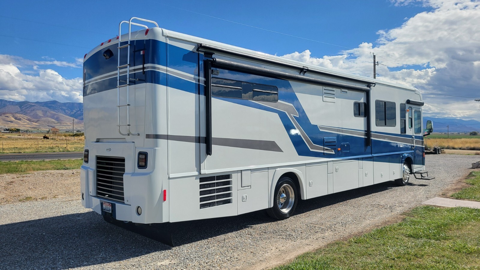 2008 Itasca Meridian 39Z Class A Rear Diesel Pusher, with 56k miles. New Modern looking Paint job. 8KW Onan generator with only 826 hours. This large RV has 2 full slide-outs. Rear King Bed plus Nightstands, and Wardrobe. Large Residential Refrigerator&Freezer upgrade, 3 Burner Range plus Double Kitchen Sink. Tons of kitchen storage! Large Sofa Bed. Booth Dinette for sit down meals! 37" TV Ent. Center, Angled Full Bath w/Shower, and Double Door Bathroom Entrance, . New Tires! New Inverter. New slide toppers. Electric awnings. Many more options included.