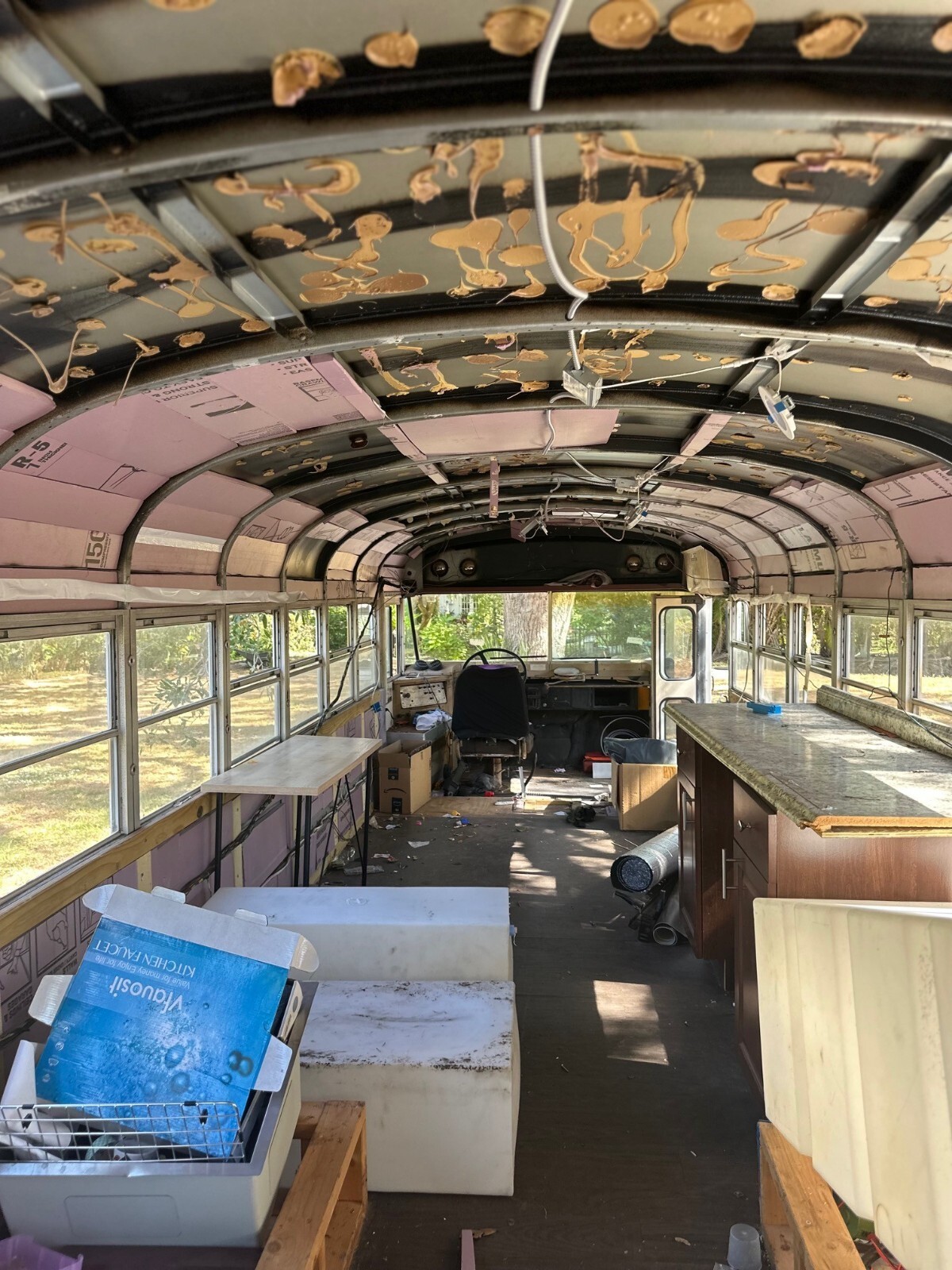 The RV School Bus Conversion from 1986 is a unique travel trailer with a sleeping capacity for 6 people. This Diesel RV features a comfortable interior without leveling jacks, air conditioners, awnings, or slide outs. Perfect for those looking for a spacious and versatile living space on the road, this converted school bus offers a cozy and nostalgic travel experience. Can easily be converted to food truck!