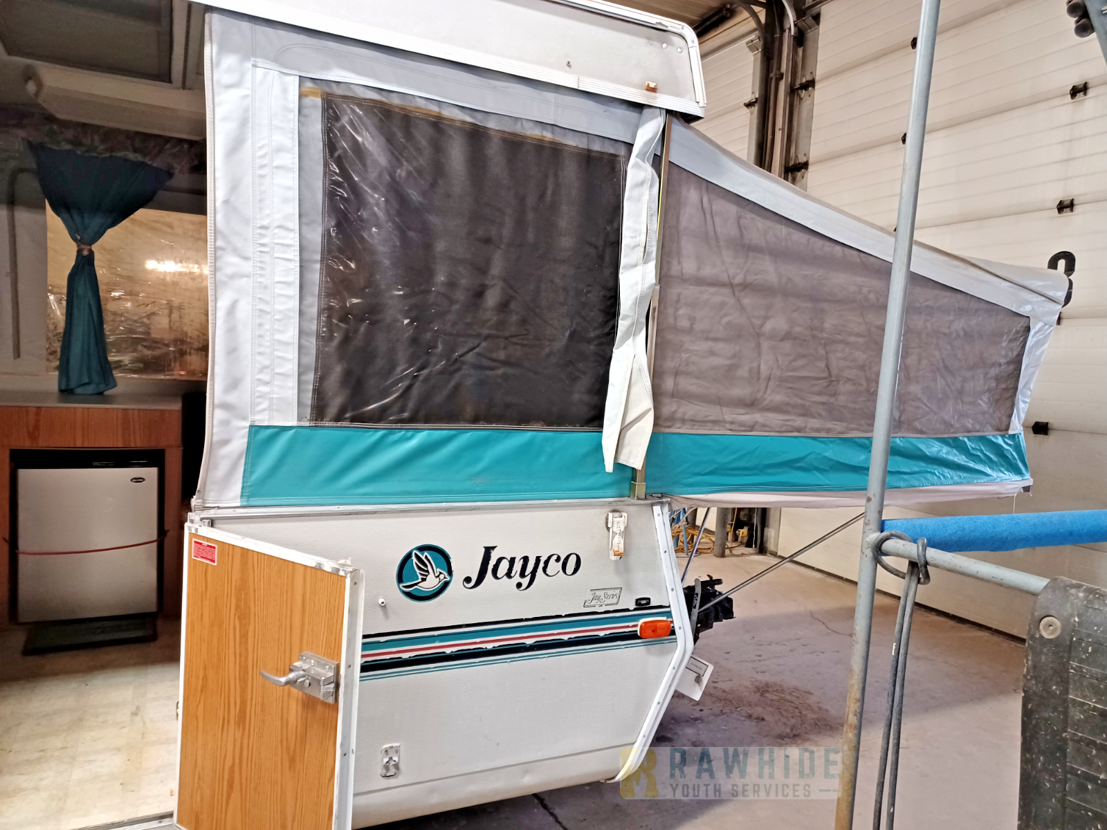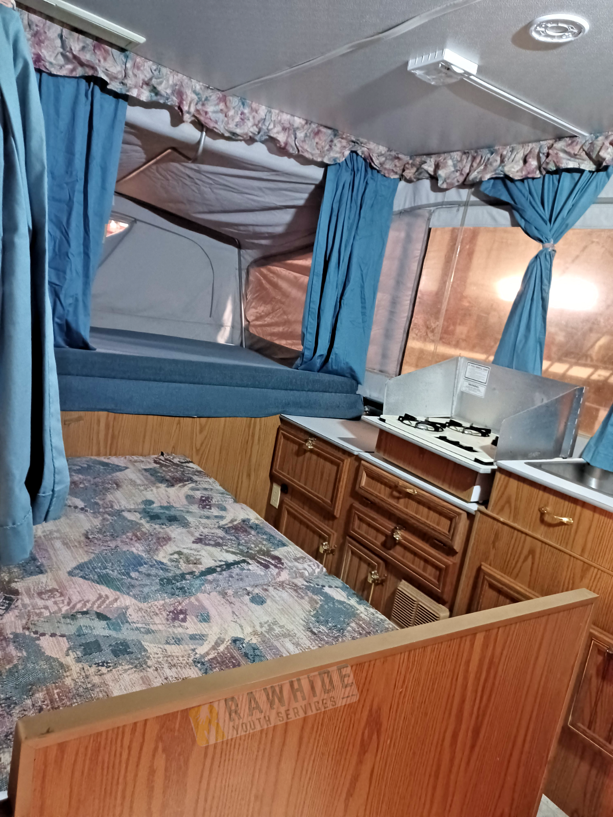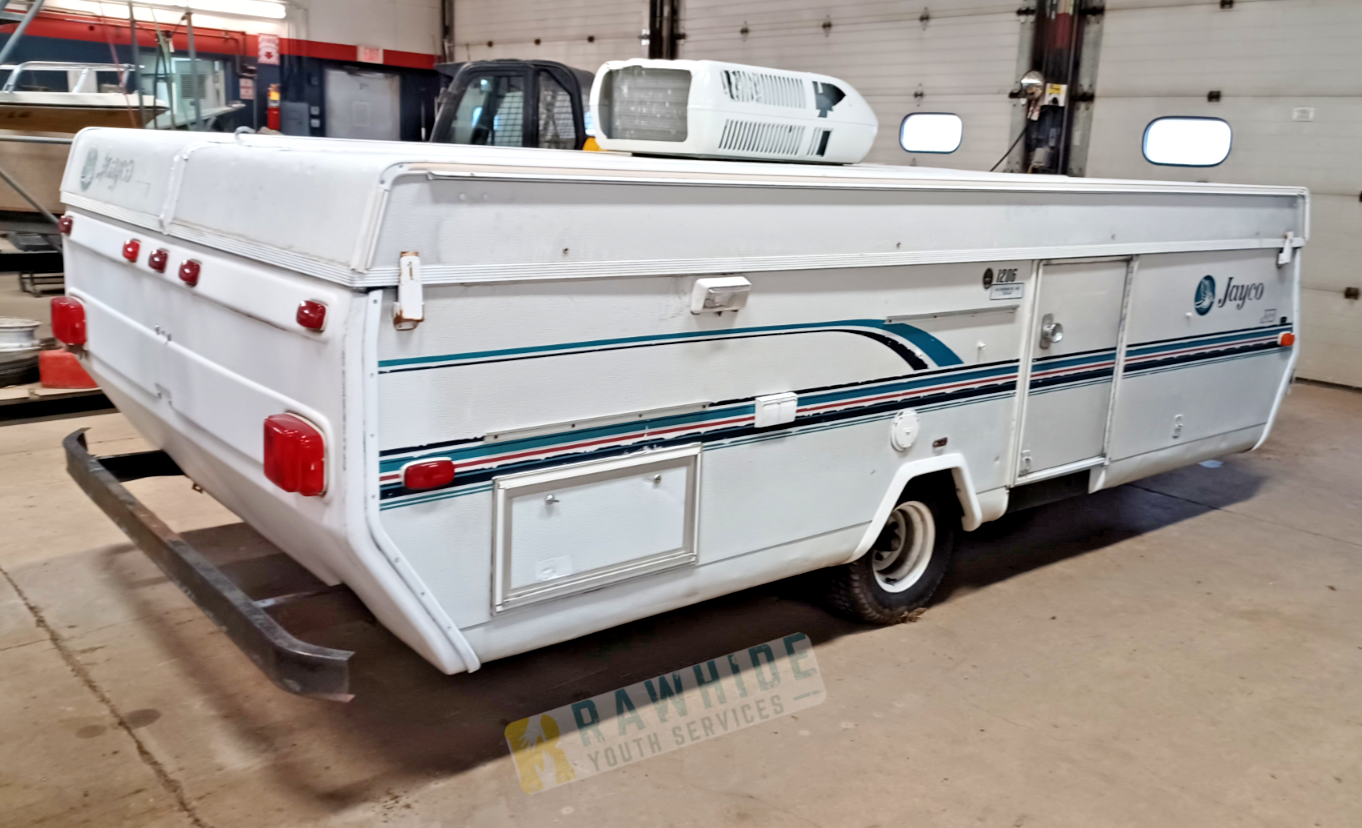 Used Jayco Pop-Up camper. Roof has some hail damage and there some noticeable repairs, did not notice any water damage to ceiling. Floor at rear of camper has some small water damage. No rodent damage noticed. All exterior lights are operable, interior lights need new bulbs. Please see pictures for condition. No title. Please read terms & conditions below before bidding. Thanks for looking & happy bidding!