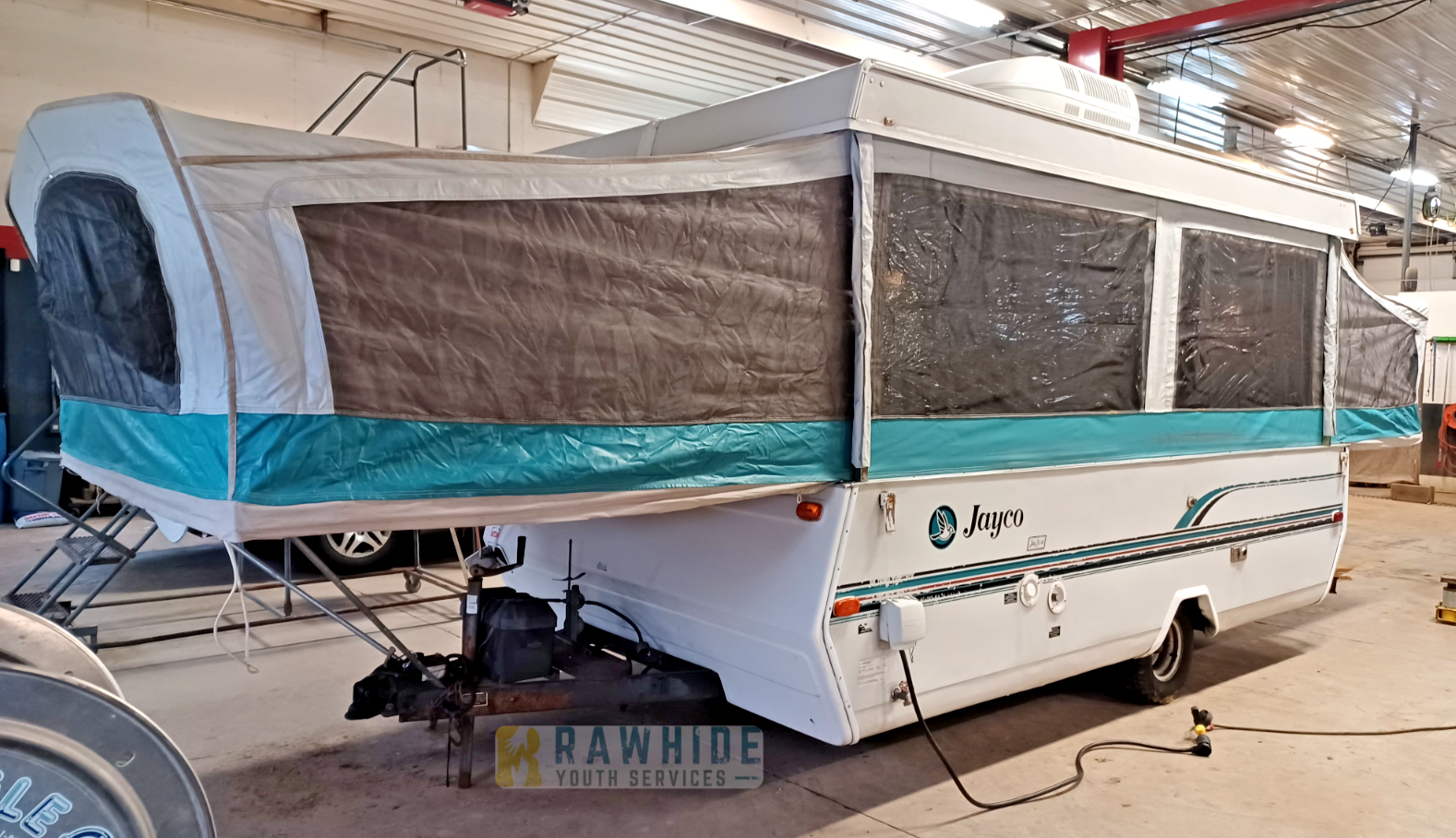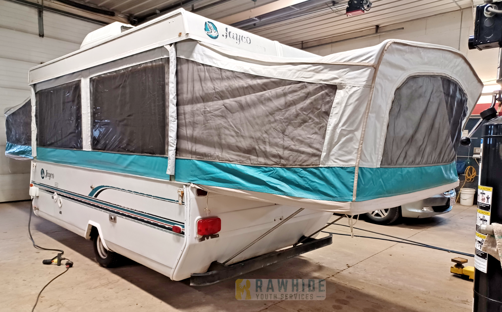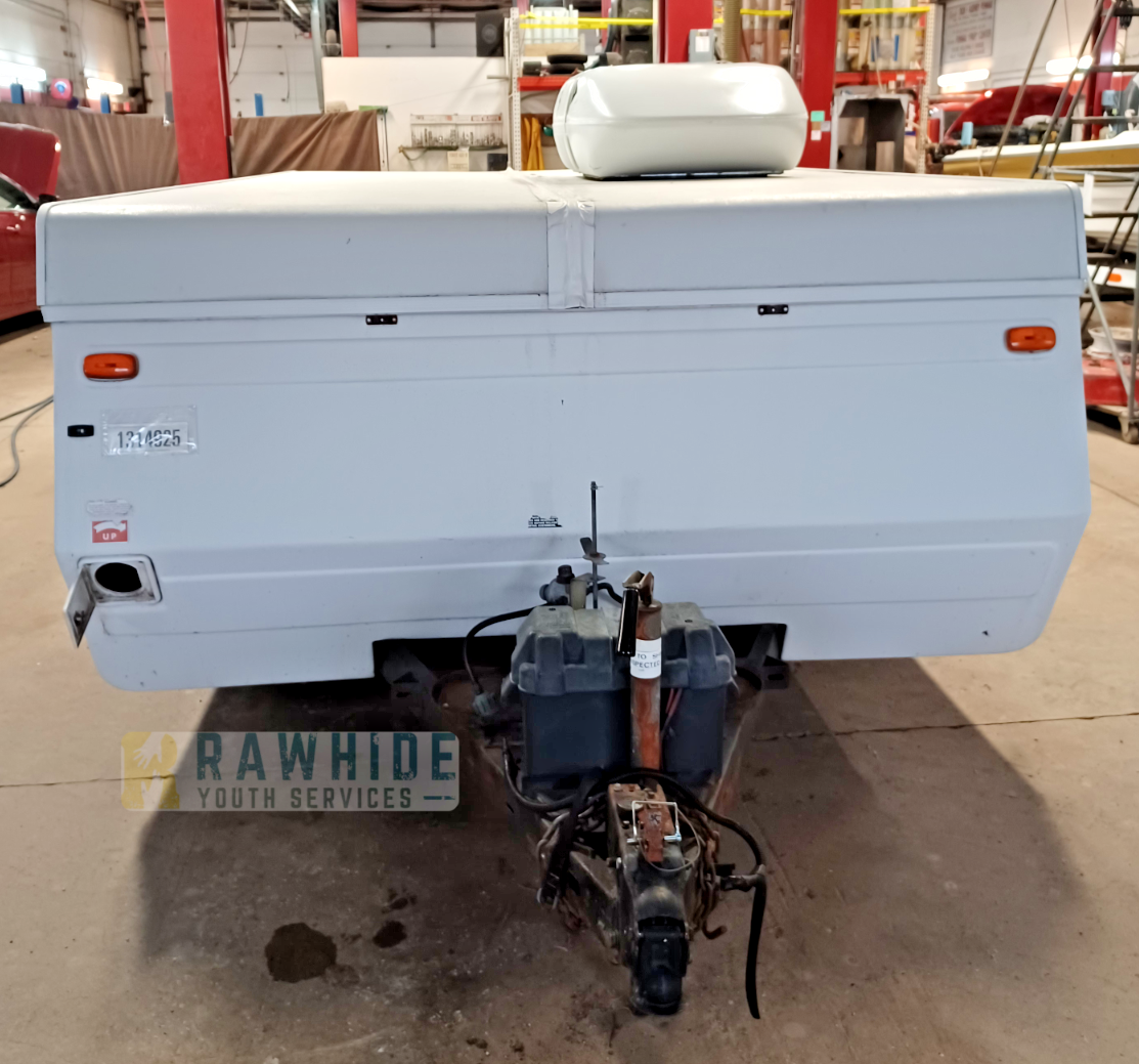 Used Jayco Pop-Up camper. Roof has some hail damage and there some noticeable repairs, did not notice any water damage to ceiling. Floor at rear of camper has some small water damage. No rodent damage noticed. All exterior lights are operable, interior lights need new bulbs. Please see pictures for condition. No title. Please read terms & conditions below before bidding. Thanks for looking & happy bidding!