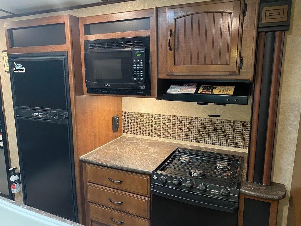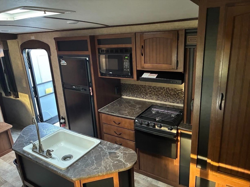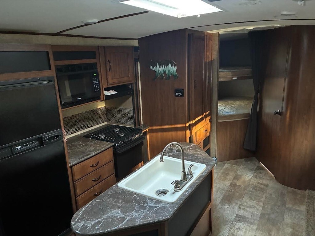 2016 Jayco White Hawk 28BHKS Travel Trailer for Sale in Coventry, RI 02816 This Whitehawk has an overall length of 32.9 feet and comes equipped with 2 power retractable slide-outs, 1 power retractable awning, 2 full size bunk beds, and plenty of room to sleep 8. This unit has been well-maintained. Kitchen Features 3-Burner Stove/Oven Overhead Fan Microwave Mid-Size Fridge/Freezer Kitchen Island Sink & Faucet Storage Space Living Room Features &