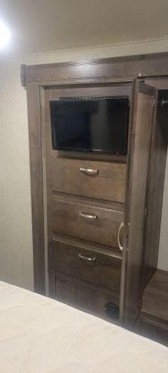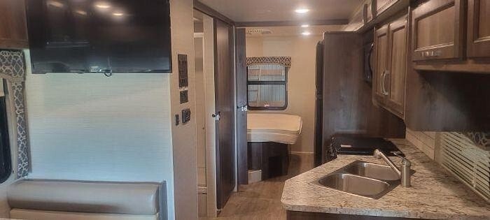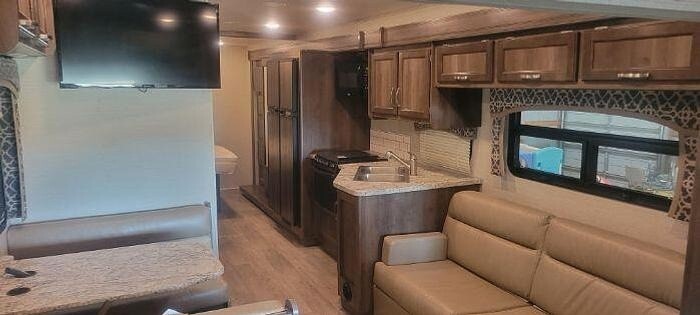 The 2018 Jayco Alante 29S is an RV that boasts a blend of compactness and spaciousness. With only 12,600 miles on the odometer, it is in excellent condition. Despite its smaller size, it feels very roomy inside, making it an ideal choice for travelers seeking both comfort and ease of maneuverability. The RV is well-equipped for both hot and cold climates with two air conditioning units. For entertainment, it features DirectTV, an outside TV, and a stereo system with DVD/CD capabilities, ensuring you're well entertained no matter where you are. The suspension has been enhanced with a CHF (Cheap Handling Fix), improving the ride quality and stability.