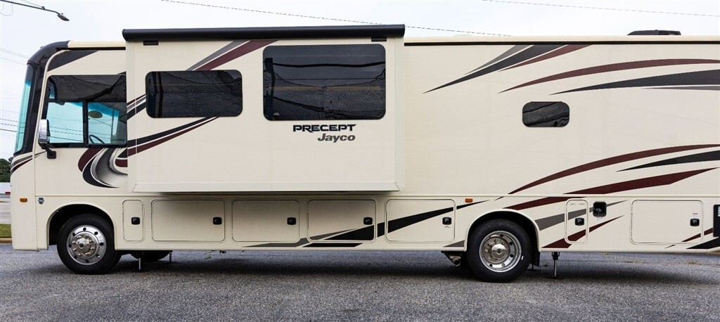 The 2019 Ford Jayco Precept Motorhome 34G is a luxurious and spacious RV with a sleeping capacity of 8 people. It includes leveling jacks, air conditioners, and awnings for added convenience and comfort while traveling. This motorhome also has a water capacity of 71-80 gallons and 2 slide outs for extended living space. With only 2654 miles on the odometer and a clean vehicle title, this Jayco motorhome is a reliable and well-maintained option for any road trip or camping adventure. Please call DAX 910 964 4068