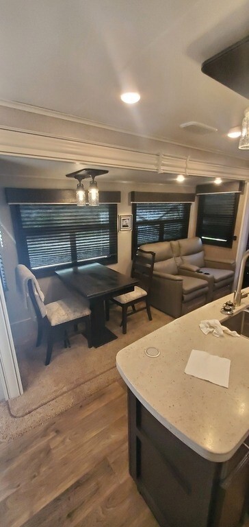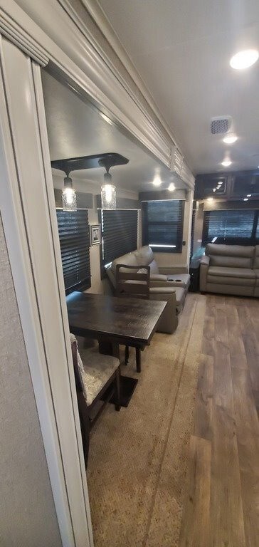 This Jayco has an overall length of 39.3 feet and comes equipped with 3 slide-outs, 2 power awnings, solar prep, 2 ac units, and plenty of room to sleep 6. This unit has been well-maintained.