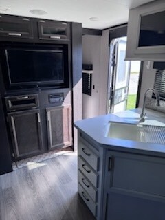 This Jayco has an overall length of 34.92 feet and comes equipped with 1 power-retractable slide-out, 2 power awnings, 1 A/C unit, a bunkhouse, an outdoor kitchen, and plenty of room to sleep up to 10. This unit has been well-maintained.