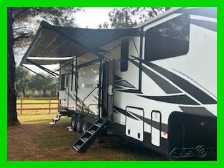 This 2020 Jayco Seismic 4113 is a top-of-the-line luxury toy hauler that combines residential comfort, rugged capability, and high-end design. With a length of 45.6 ft and a dry weight of 16,785 lbs., this heavy-duty triple-axle hauler is built to handle your toys and your lifestyle with ease. It’s in excellent used condition, fully loaded with premium features, and sleeps up to 9 people comfortably.