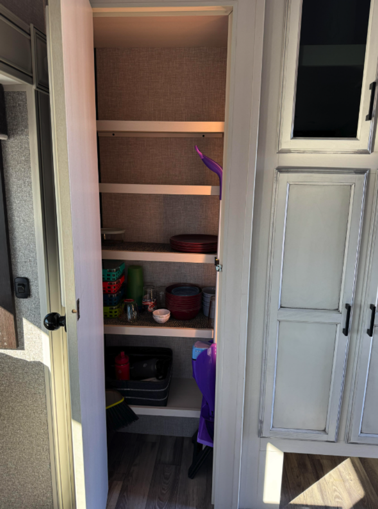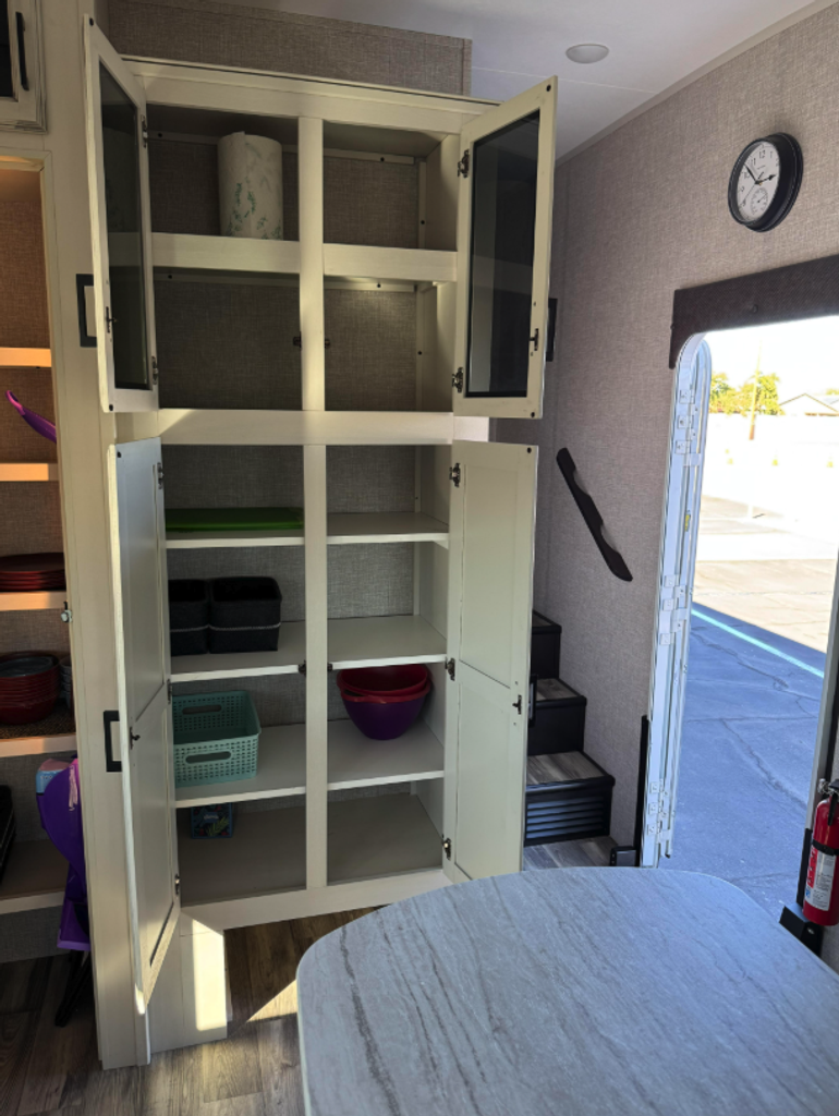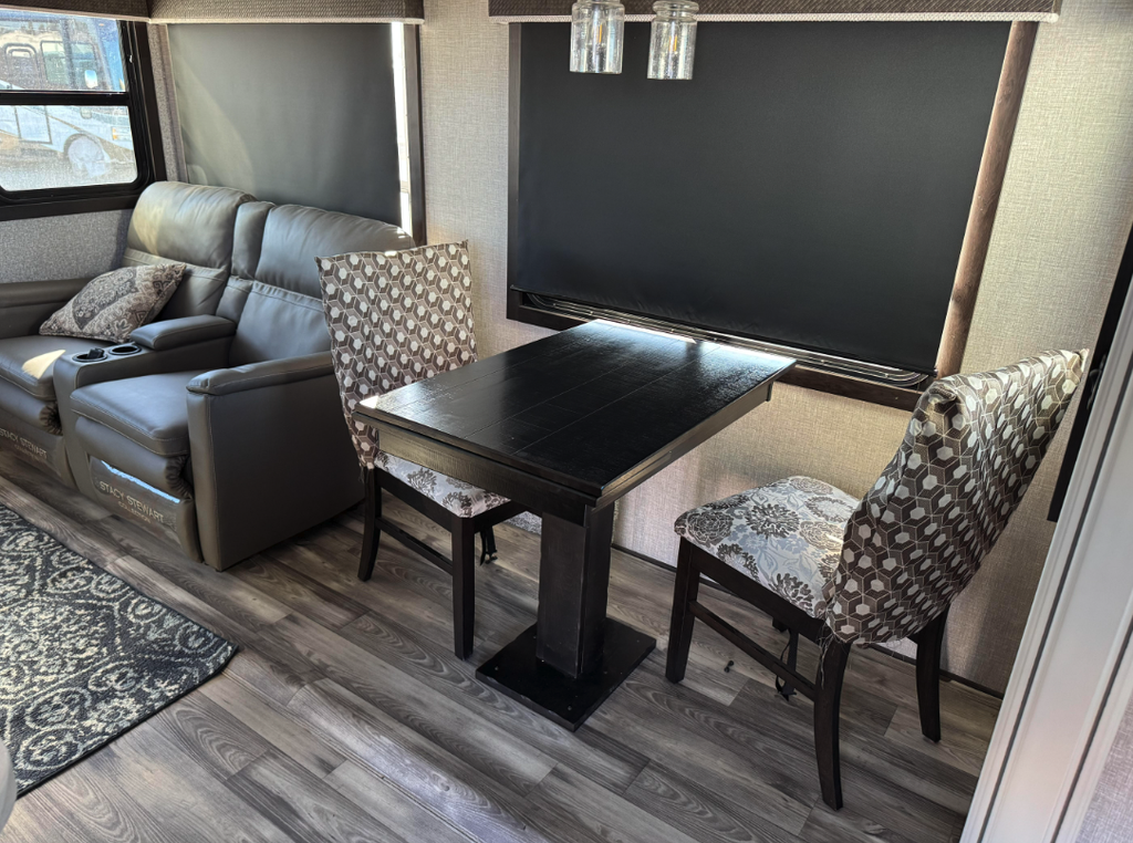 Climate control is handled with ease thanks to a 35,000 BTU furnace and a 15,000 BTU whisper-quiet A/C, keeping the interior comfortable without sacrificing peace and quiet. Solar prep, LED lighting, and thoughtful storage solutions round out a modern, efficient setup.