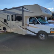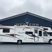 This Jayco has an overall length of 40 feet and comes equipped with 4 power retractable slide-outs, 2 power retractable awnings, 2 A/C units, a generator, a fireplace, an outdoor entertainment system, and room to sleep up to 4. This unit has been well-maintained.