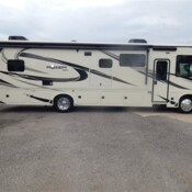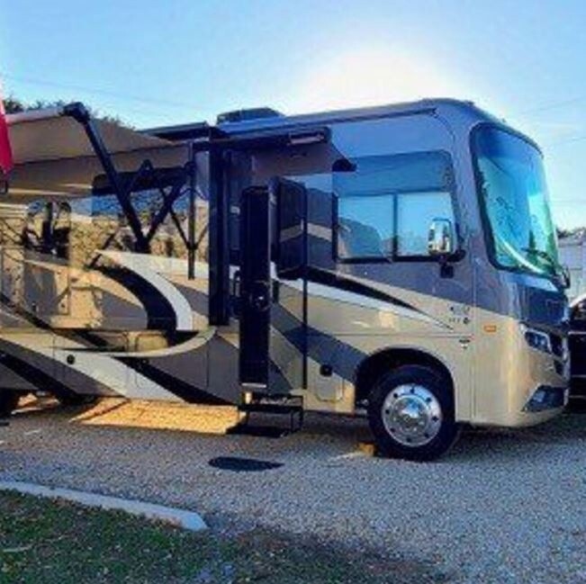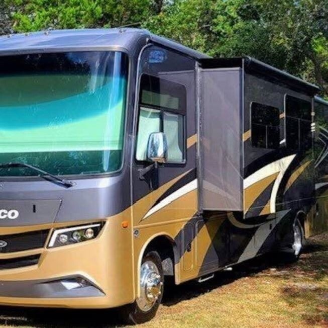 This Jayco is powered by a 7.3L V8 engine and a 6-speed automatic transmission with 3,500 miles. The overall length is 36.5 feet, and it comes equipped with 2 power-retractable slide-outs, a 23-foot power awning, 2 A/C units, an Onan generator, a fireplace, a washer/dryer combo, an outdoor entertainment system, and plenty of room to sleep 6. This unit has been well-maintained.