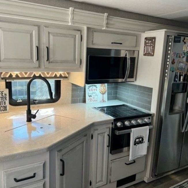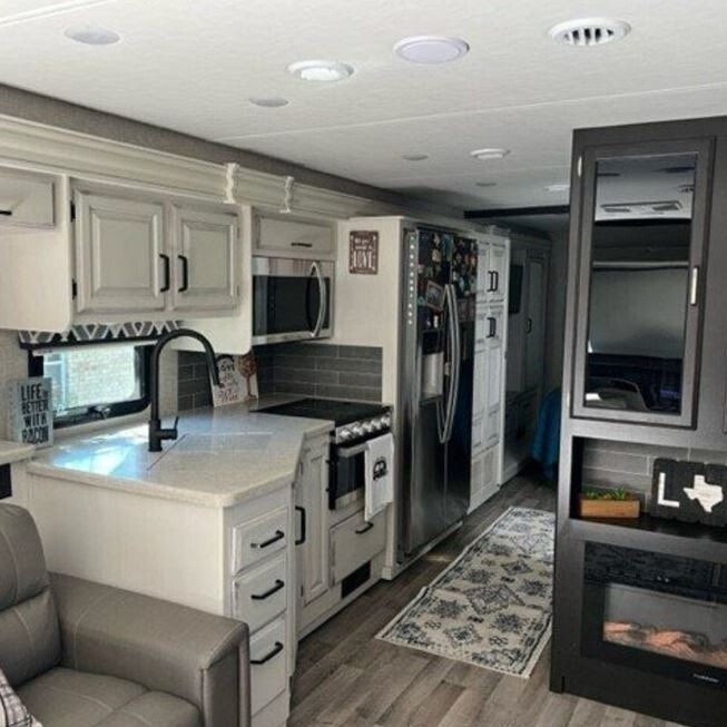 2022 Jayco Precept 34G Class A RV For Sale in Leander, TX 78641 This Jayco is powered by a 7.3L V8 engine and a 6-speed automatic transmission with 3,500 miles. The overall length is 36.5 feet, and it comes equipped with 2 power-retractable slide-outs, a 23-foot power awning, 2 A/C units, an Onan generator, a fireplace, a washer/dryer combo, an outdoor entertainment system, and plenty of room to sleep 6. This unit has been well-maintained. Kitchen/Living Area Features 3-Burner Stove/Oven Overhead Fan Microwave Residential Fridge/Freezer Sink & Faucet with Cover