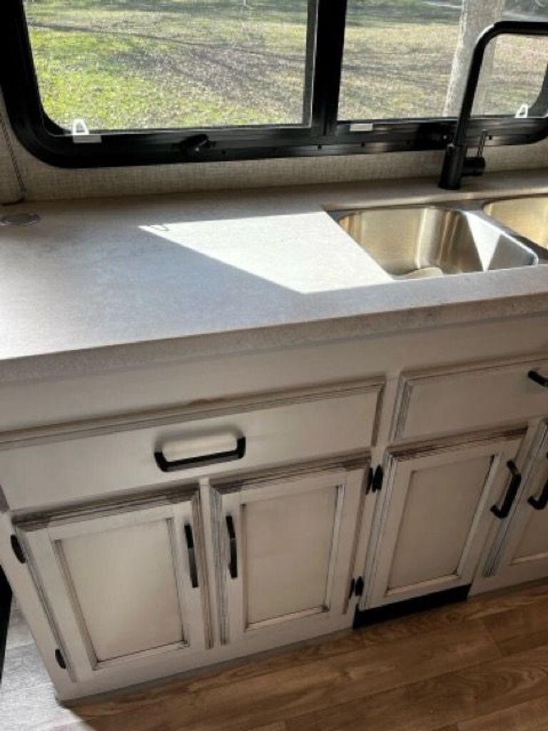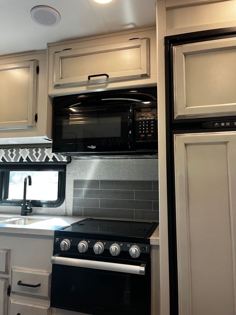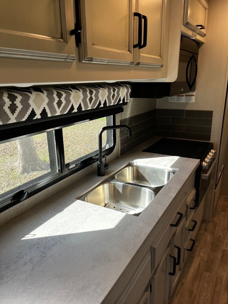 Step inside to a spacious and inviting interior with abundant natural light, comfortable seating, and a versatile floorplan ideal for both daily living and entertaining. The galley-style kitchen is thoughtfully equipped with modern appliances, ample counter space, and plenty of storage - perfect for preparing anything from quick snacks to full meals on the road.