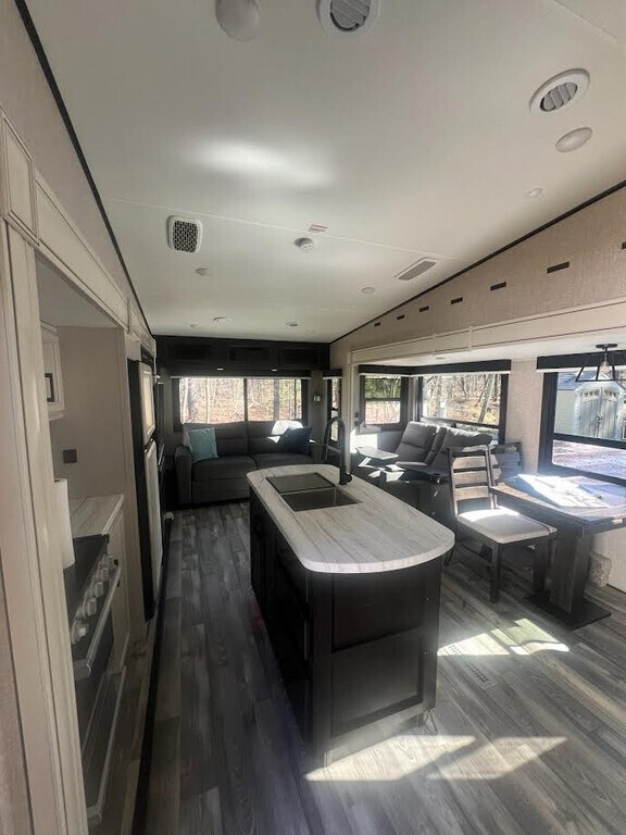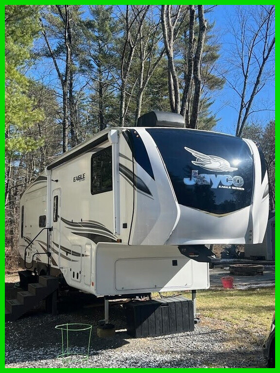 2023 Jayco Eagle HT 27RS Fifth Wheel for Sale in Milton, NY 12547 This Jayco has a overall length of 32.67ft and comes equipped with 2 slide outs, 15ft power awning, 2 AC units, and room to sleep 6. Has been well maintained and exterior has ceramic coating and custom premade stairs. Kitchen/Living Features Table and Chairs 3 Burner Stove Fridge/Freezer Microwave w/ Overhead Fan Kitchen Island w/Sink and Faucet Pantry Smoke, CO2, & LP Gas Detector Theater Seating w/Tables