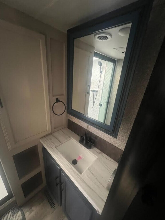 This Jayco has a overall length of 32.67ft and comes equipped with 2 slide outs, 15ft power awning, 2 AC units, and room to sleep 6. Has been well maintained and exterior has ceramic coating and custom premade stairs.