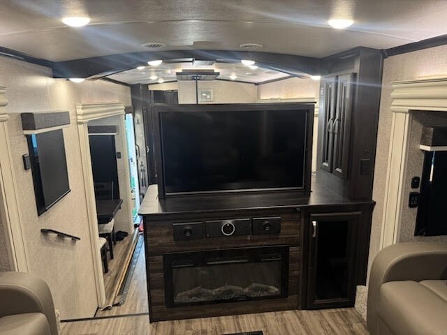 Step inside and enjoy the front living layout with dual hide-a-bed sofas, theater seating with heat and massage, and a cozy fireplace below a large entertainment center. The JAYCOMMAND smart system lets you monitor and control nearly everything from your phone — lighting, slides, climate, and more.
