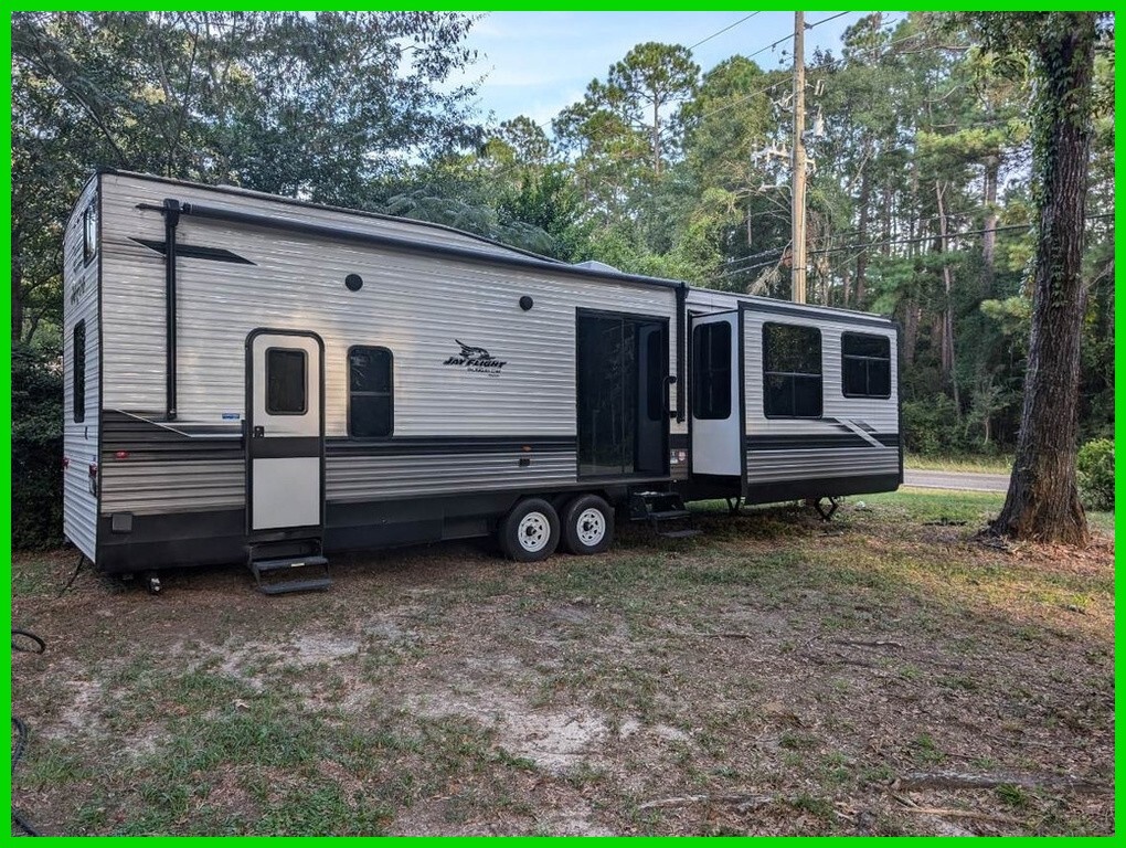 2024 Jayco Jay Flight 40LOFT Destination Travel Trailer For Sale in Crestview, FL 32539 This Jay Flight has an overall length of 41 feet and comes equipped with 3 power retractable slide-outs, 1 power retractable awning, and plenty of room to sleep 8. This unit has been well-maintained. VIDEO: Walk Through Kitchen Features 3-Burner Stove/Oven Overhead Fan Microwave Full-Size Fridge/Freezer Sink & Faucet Kitchen Island Pantry Storage Spaces