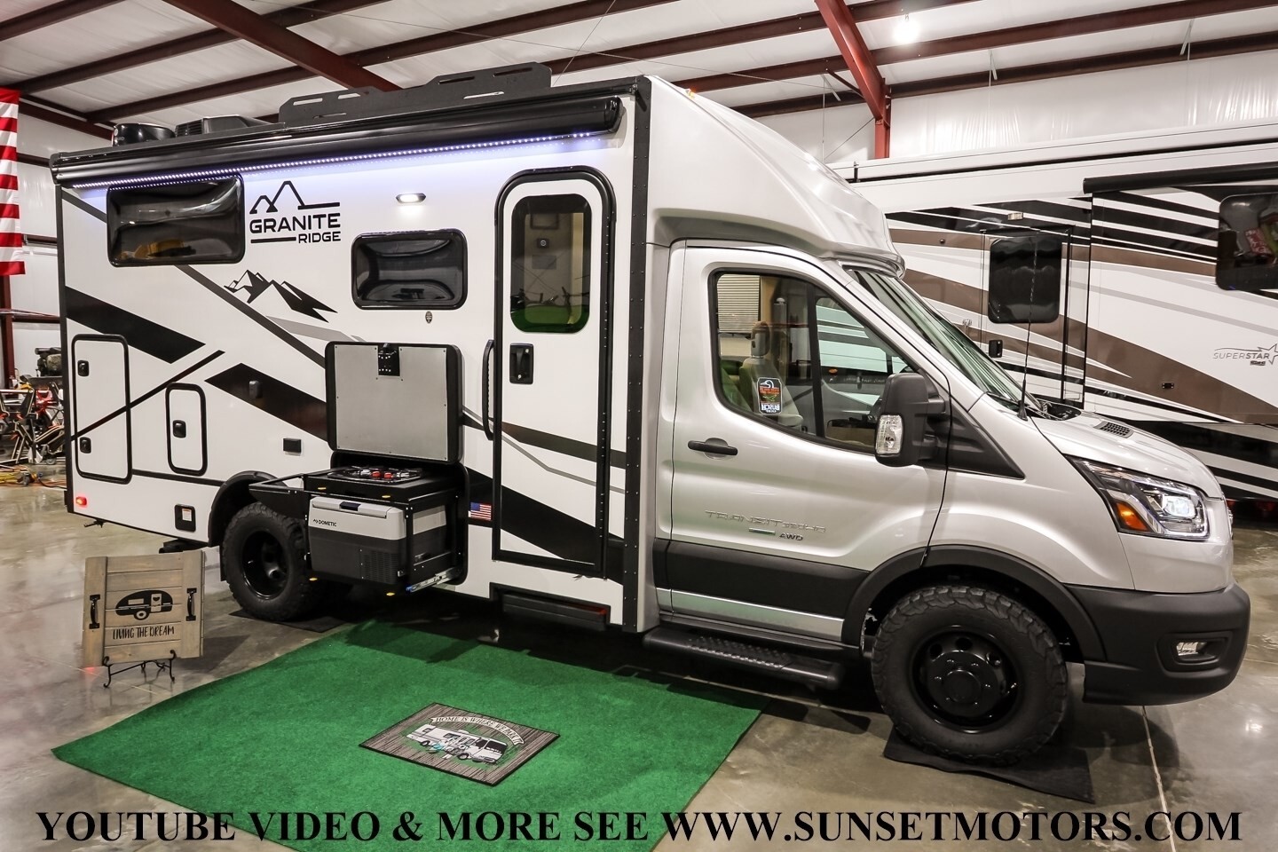 See www.sunsetmotors.com for more photos and a walk around YouTube video, Clean Carfax, Off RD ready 2025 Jayco Granite Ridge 22T Class C Motor Home, Grotto Decor, Loaded with options, Only 7,346 Miles, Powerful 400 hp 3.5L EcoBoost V6 gas engine, 10 Speed automatic transmission, All wheel drive, modern cockpit layout, Large touch screen with Apple Carplay and Android Auto, Bluetooth, Adaptive cruise control, Blind Spot monitor system, Back up camera, rain sense wipers, Handles and drives like a luxury SUV, very maneuverable, Perfect size 23' 5'' long, In and out of any campground no problem, Keyless remote entry, Power windows, Locks Mirrors, Van Compass 2 inch lift kit for better ground clearance, Upgraded Hellwig suspension for better handling, Very quiet and efficient 2.8 KW gasoline Generator with only 13 hours, 2,000 Watt Inverter, 3.9KWH Lithium battery bank, 360 Watt solar panel, Fiberglass roof, Smart 32 Inch TV, Starlink