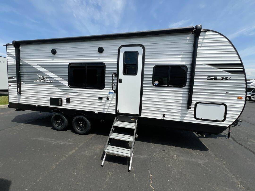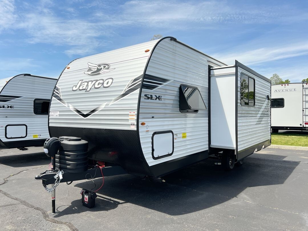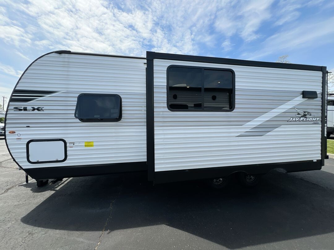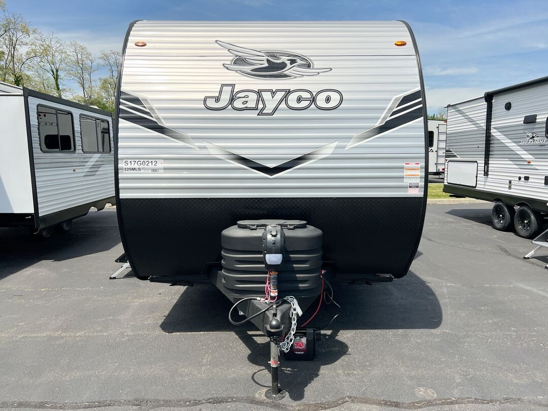 Introducing the 2025 Jayco Jay Flight SLX 225MLS, a travel trailer designed to offer comfort and convenience for your adventures. With an overall length of 27 feet 1 inch, this model provides ample living space while remaining easy to tow.Inside, the 225MLS features a thoughtfully designed floor plan that maximizes space and functionality. The living area includes comfortable seating, perfect for relaxing after a day of exploration. The interior boasts durable vinyl flooring and solid hardwood cabinet doors, combining style with practicality.The kitchen is equipped with essential amenities to make meal preparation a breeze. It includes a three-burner stove top, microwave oven, and an 8-cubic-foot 12V refrigerator, providing ample storage for your ingredients. The dinette area offers a cozy spot for meals and can convert into an additional sleeping space if needed.Sleeping arrangements in the 225MLS are designed for comfort.