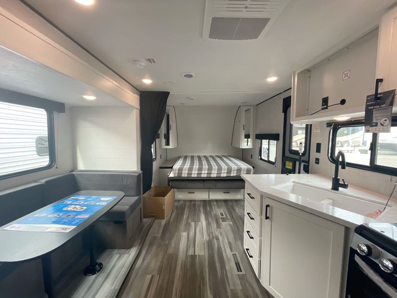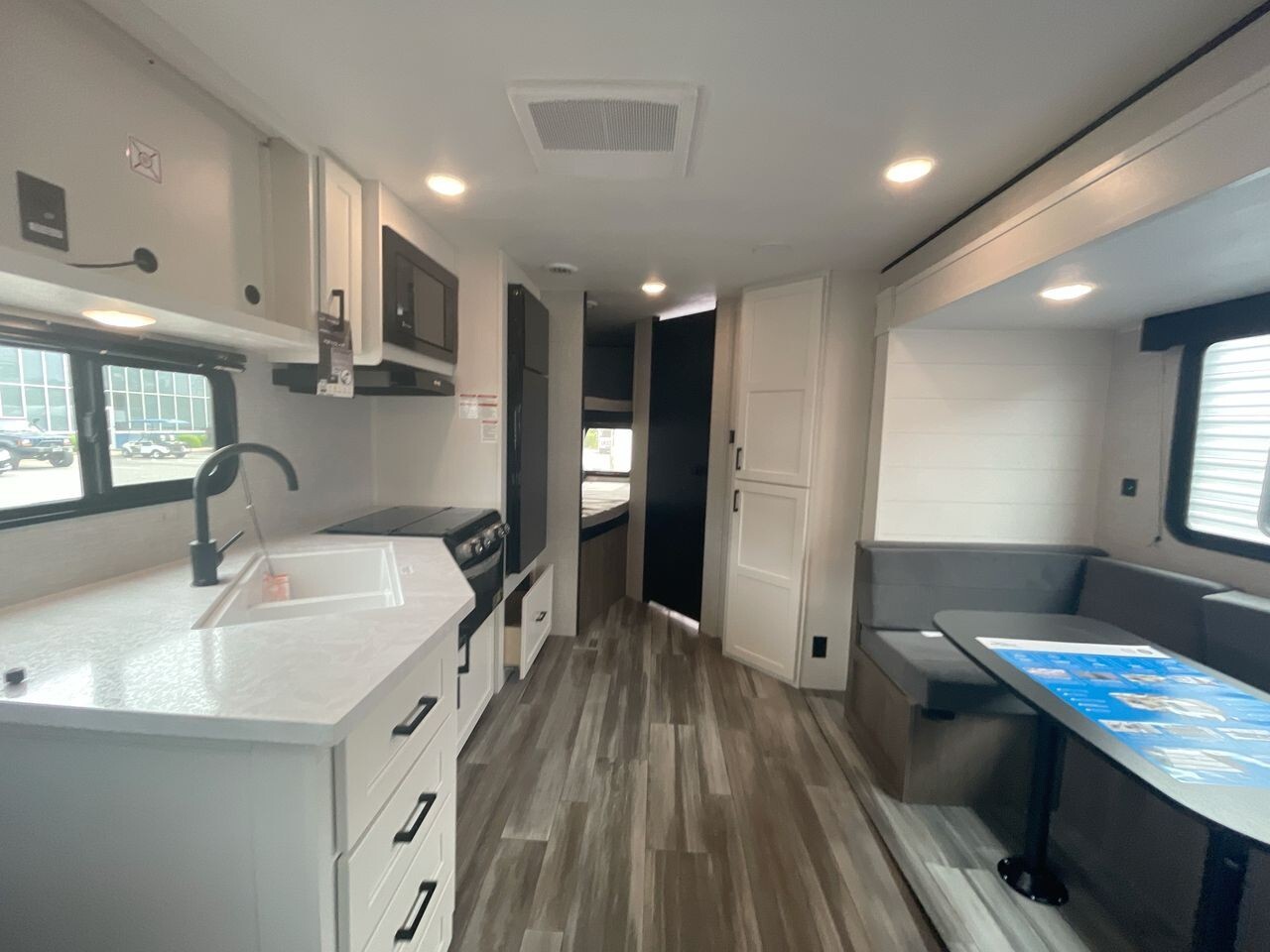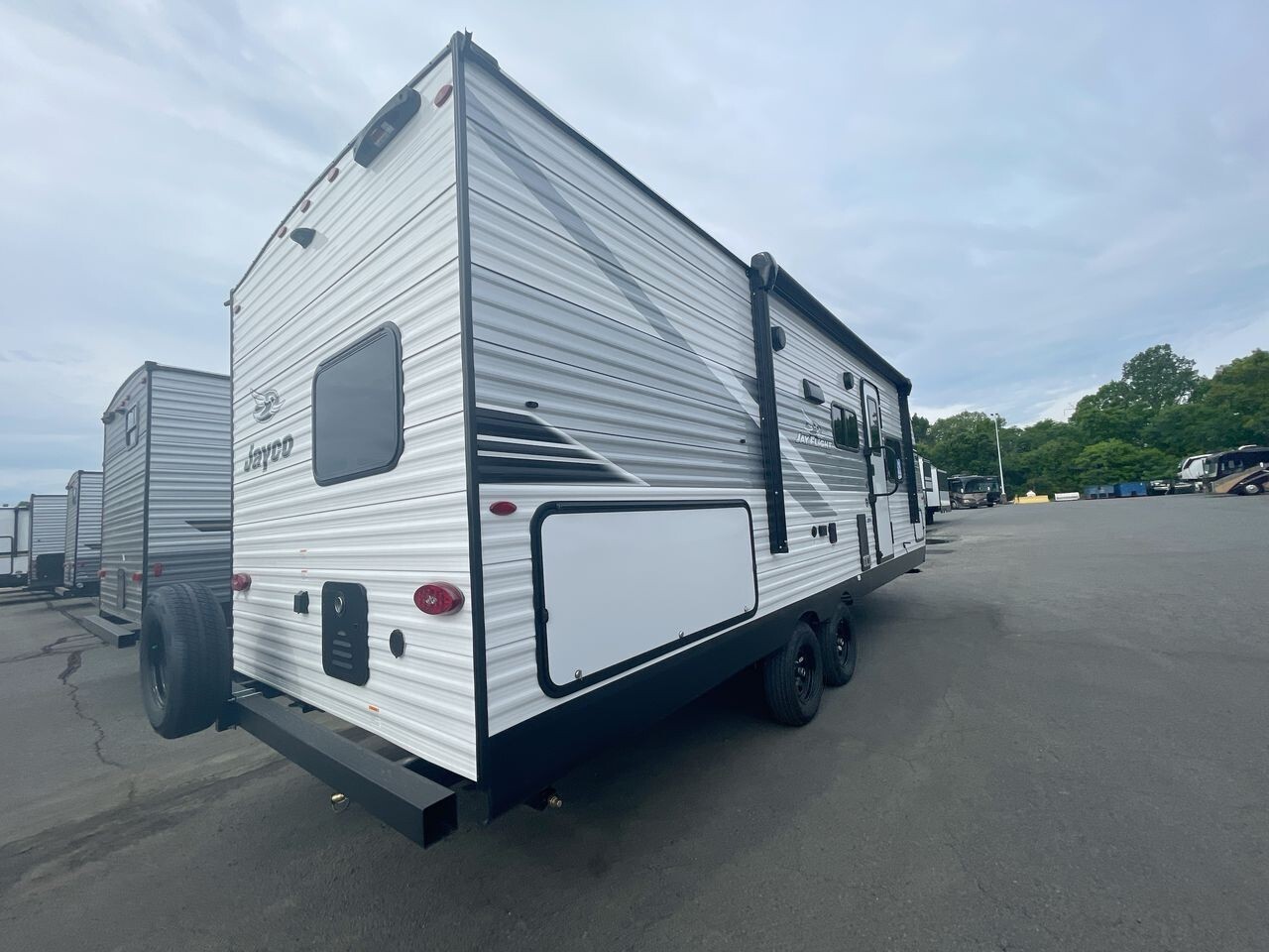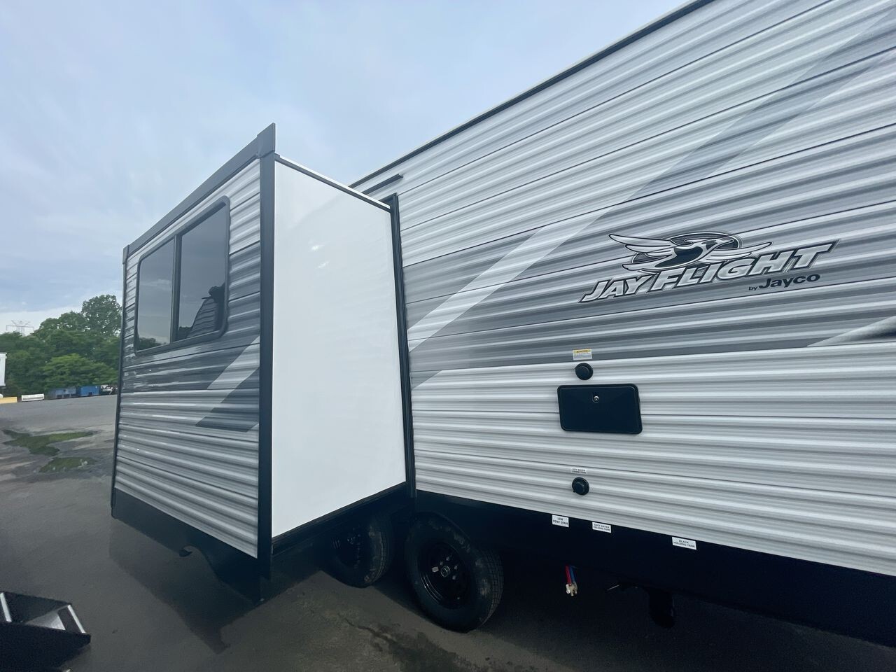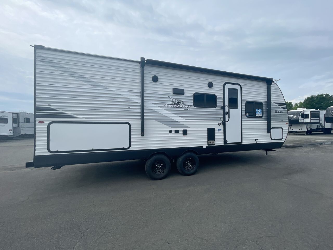 The 2025 Jayco Jay Flight SLX 235MBH is an excellent choice for families seeking adventure with comfort. This travel trailer combines durable construction with smart design, ensuring every trip is enjoyable.Built on a fully integrated A-frame with galvanized-steel, impact-resistant wheel wells, the 235MBH offers a design that enhances fuel efficiency. Its lightweight yet sturdy frame makes towing easy, even for vehicles that aren't heavy-duty haulers.Inside, the warm and inviting ambiance is complemented by a well-thought-out floor plan that optimizes space. The main highlight is the versatile sleeping arrangements, including a standard queen bed and double-size bunks, accommodating up to eight people.The interior features user-friendly amenities designed for today's tech-savvy families. A built-in entertainment system with high-quality speakers sets the stage for cozy movie nights or keeping everyone entertained