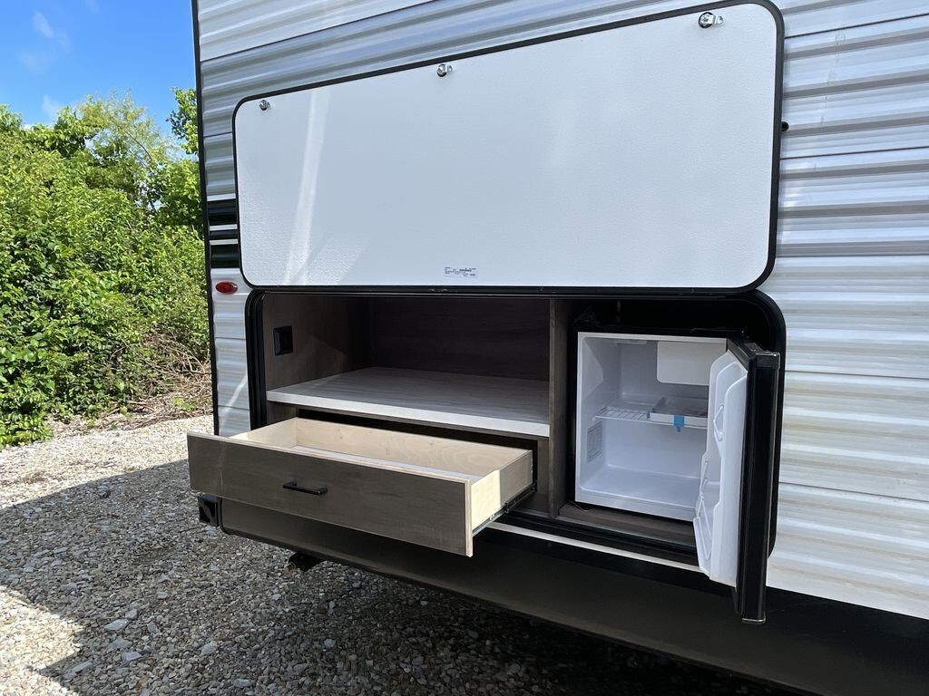 The 2024 Jayco Jay Flight SLX 261BHS is a welcoming and reliable travel trailer, perfect for families and camping enthusiasts looking for comfort and convenience. As a part of Jayco's esteemed lineup, the 261BHS model continues to deliver on the promise of a quality camping experience with its smart design and thoughtful features.At the heart of the 2024 Jay Flight SLX 261BHS is its family-friendly floorplan, designed to maximize space and functionality. With the ability to comfortably sleep up to ten people, this travel trailer is perfect for family adventures or getaways with friends. The private master bedroom features a queen-sized bed, offering a cozy retreat with added privacy thanks to the included curtains. For larger groups, the double-over-double bunk beds in the rear will be a hit with kids or guests. The convertible sofa and dinette offer additional sleeping options, ensuring everyone has a spot to rest.A highlight of the
