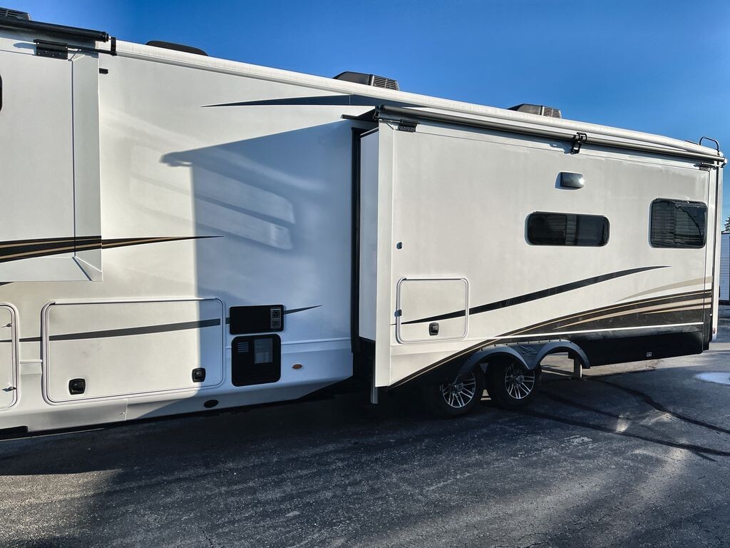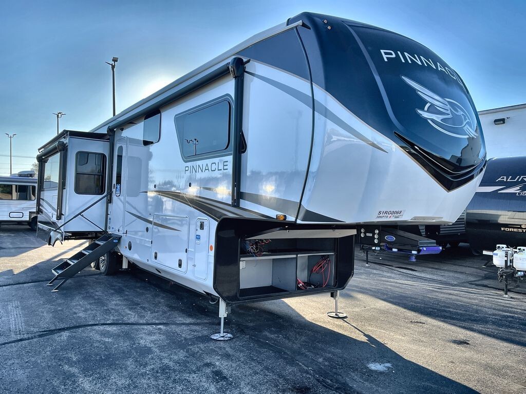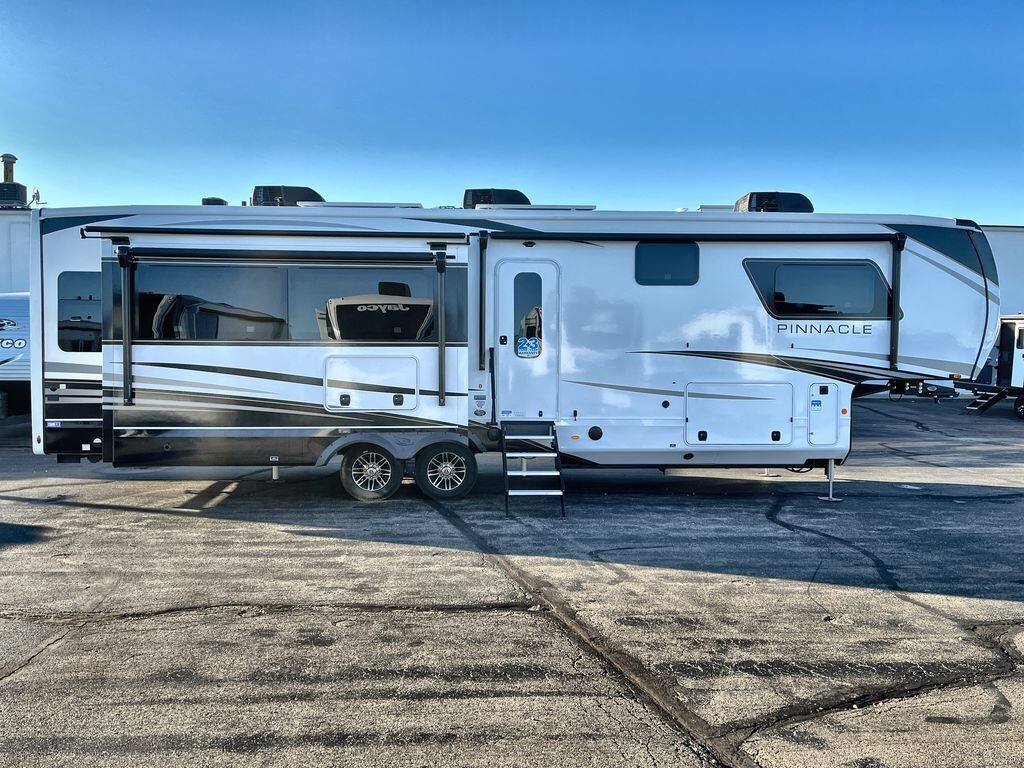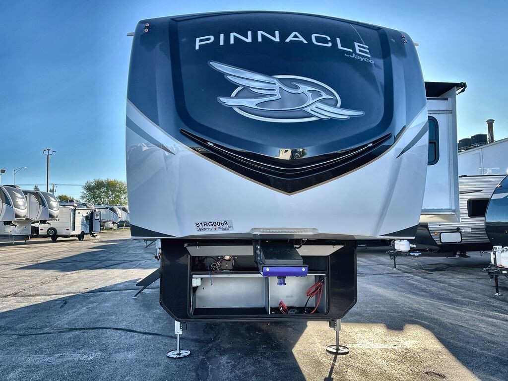 Introducing the 2025 Jayco Pinnacle 38KPTS, a premier fifth-wheel RV crafted for those who seek luxury and comfort on the road. Jayco's commitment to quality and innovation is evident in the 38KPTS, offering a spacious and well-appointed home away from home.