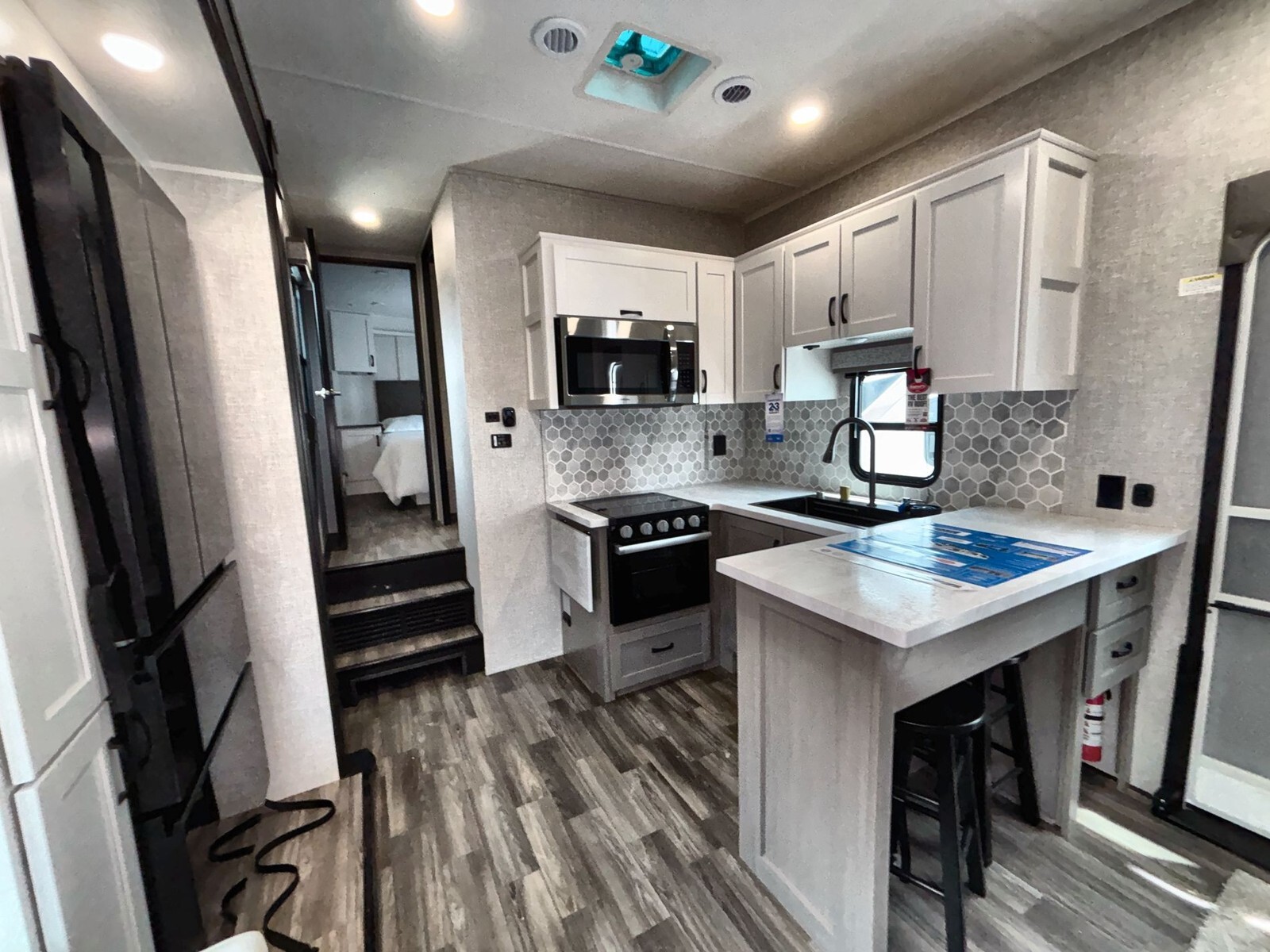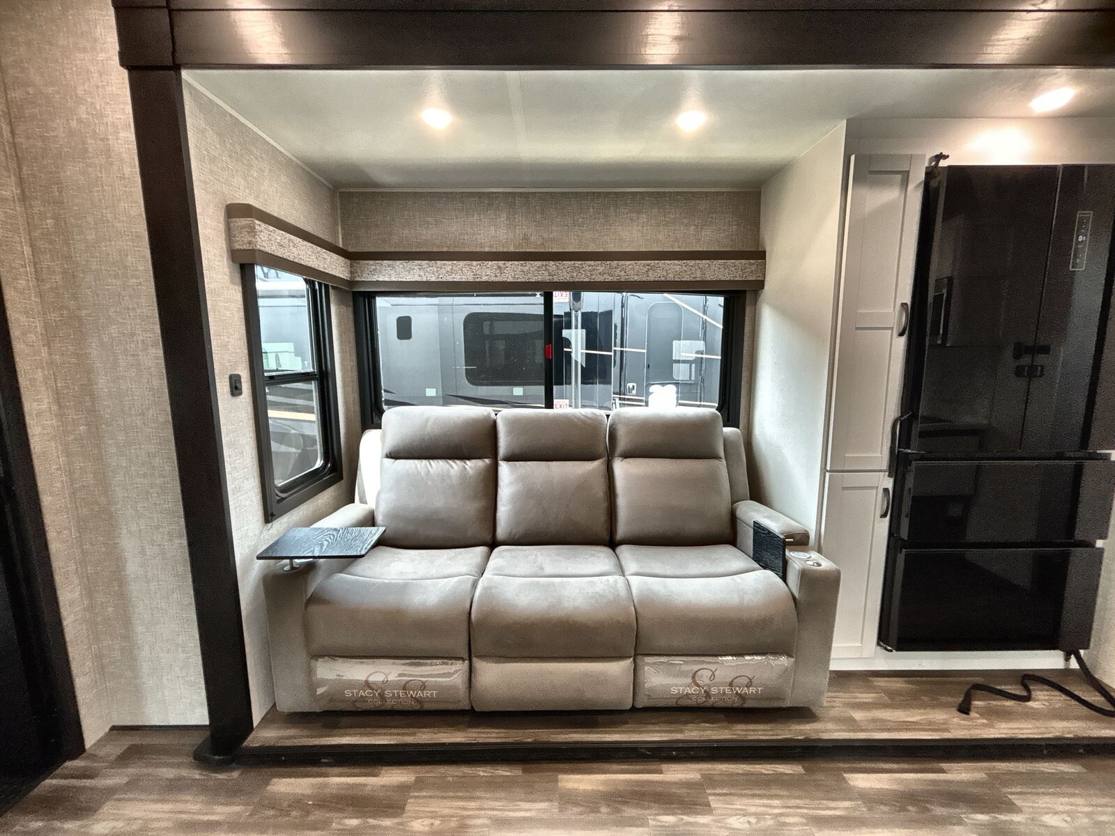 Measuring 41.75 feet in length and 8.5 feet in width, the Seismic 359 provides a roomy interior that feels like a home away from home. The well-thought-out floor plan maximizes living space and usability. The living area includes comfortable seating and a modern entertainment system, creating a welcoming space to relax after a day of adventure. Large windows let in plenty of natural light, adding to the warm and inviting atmosphere.