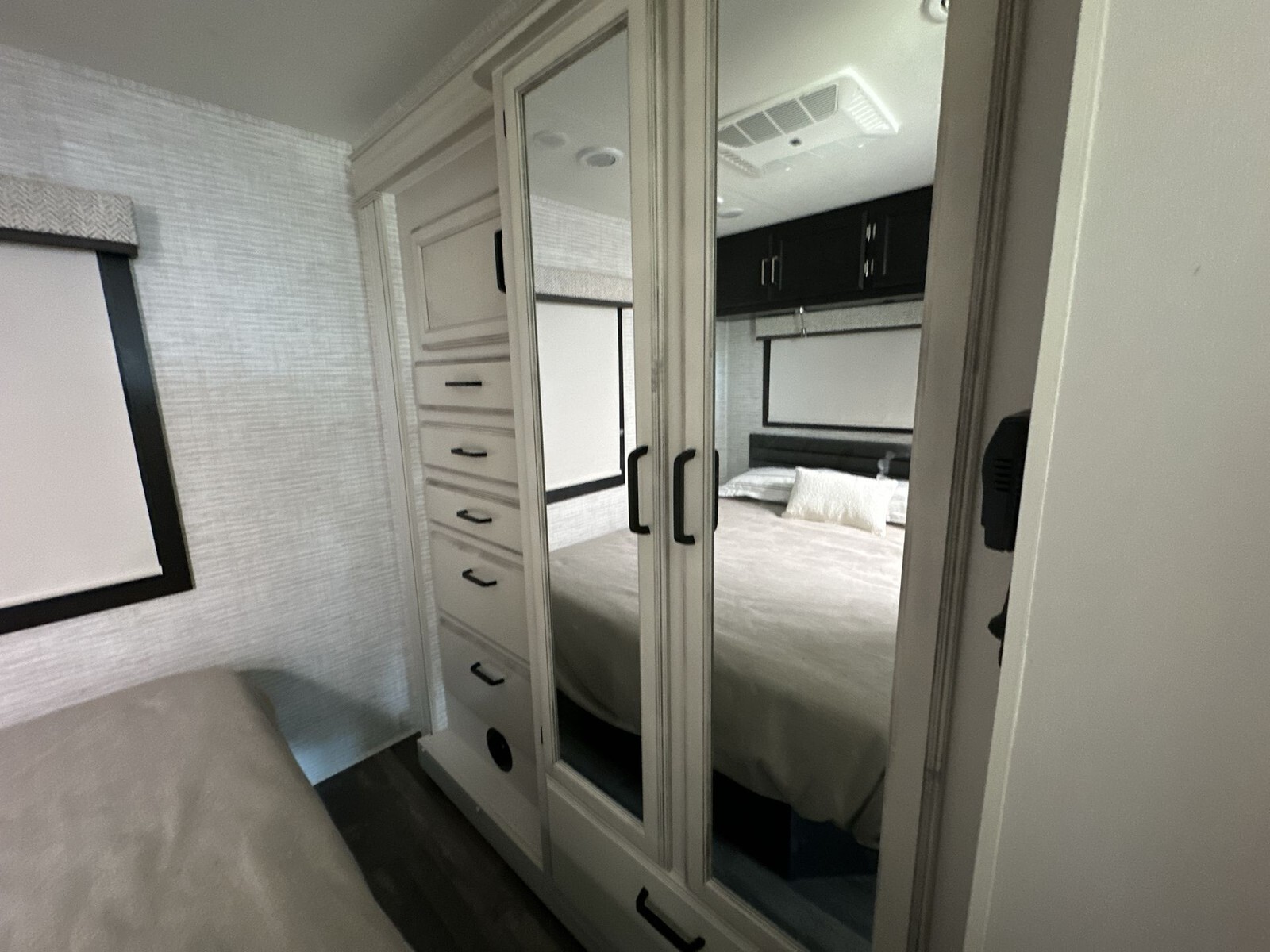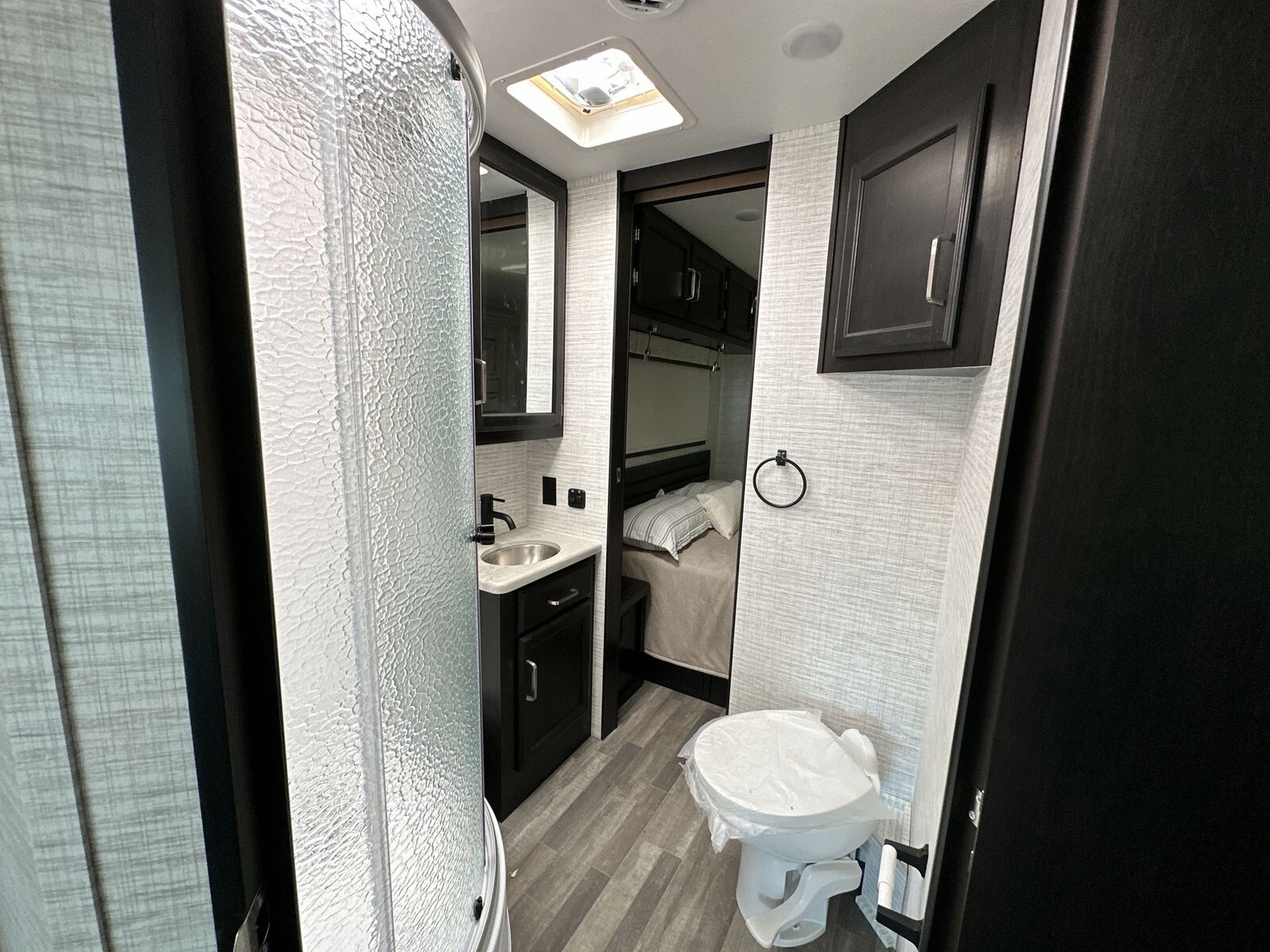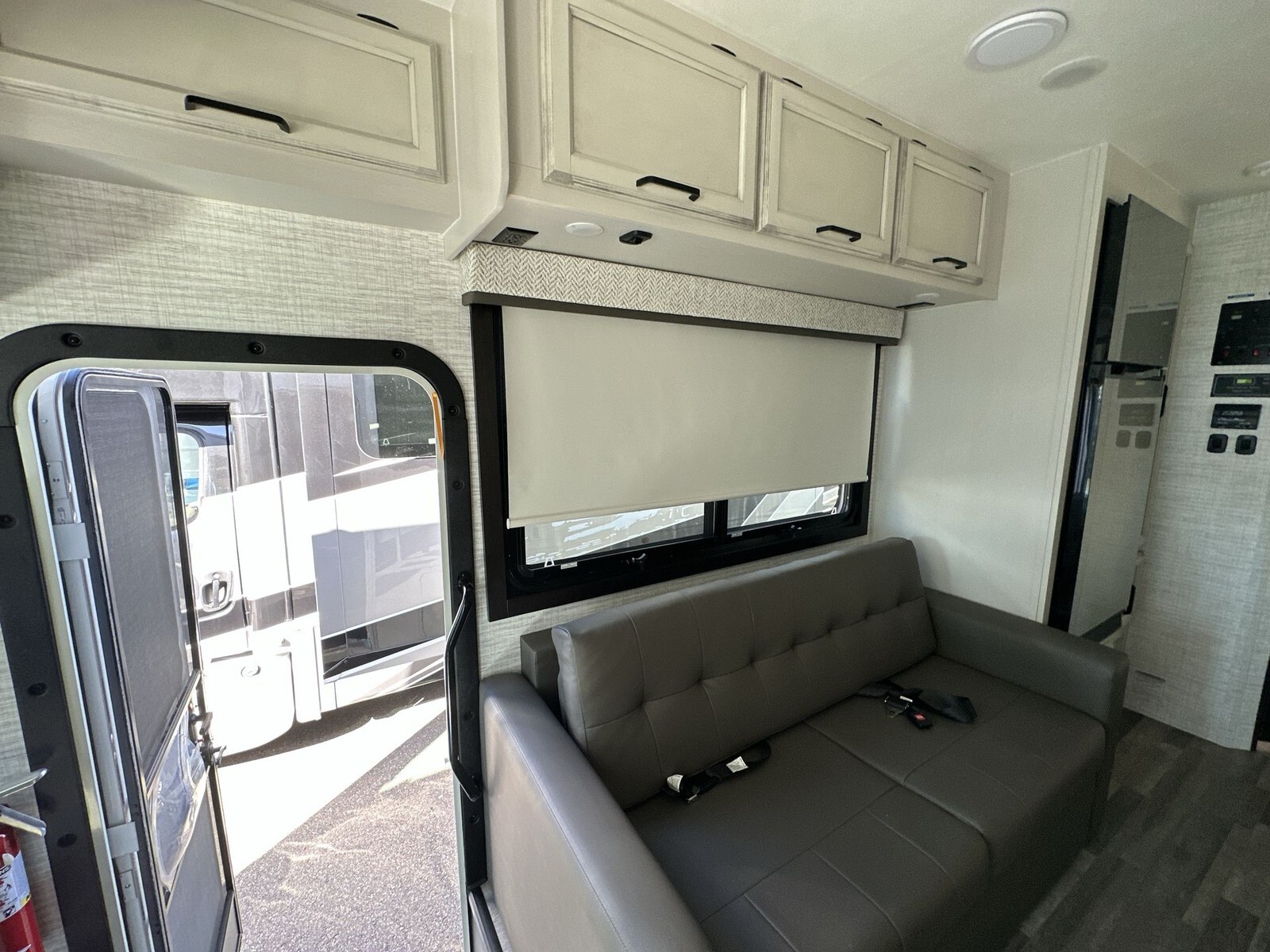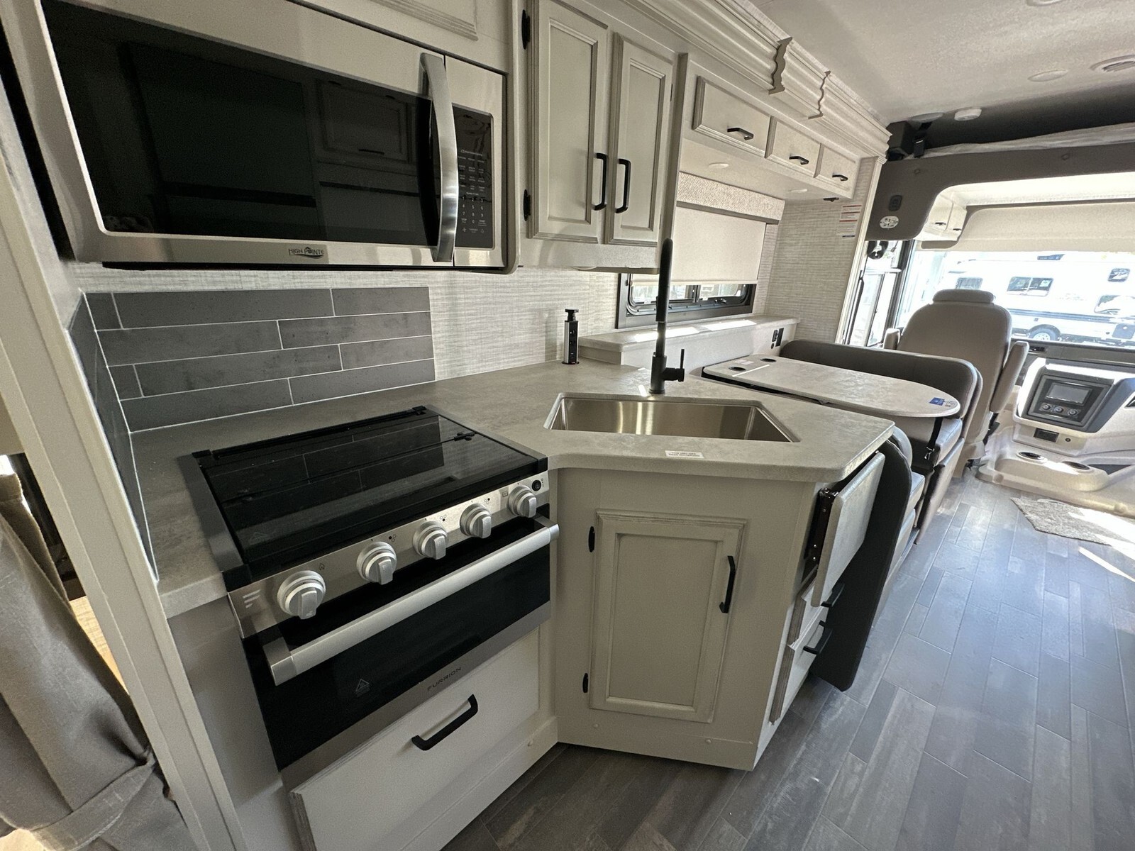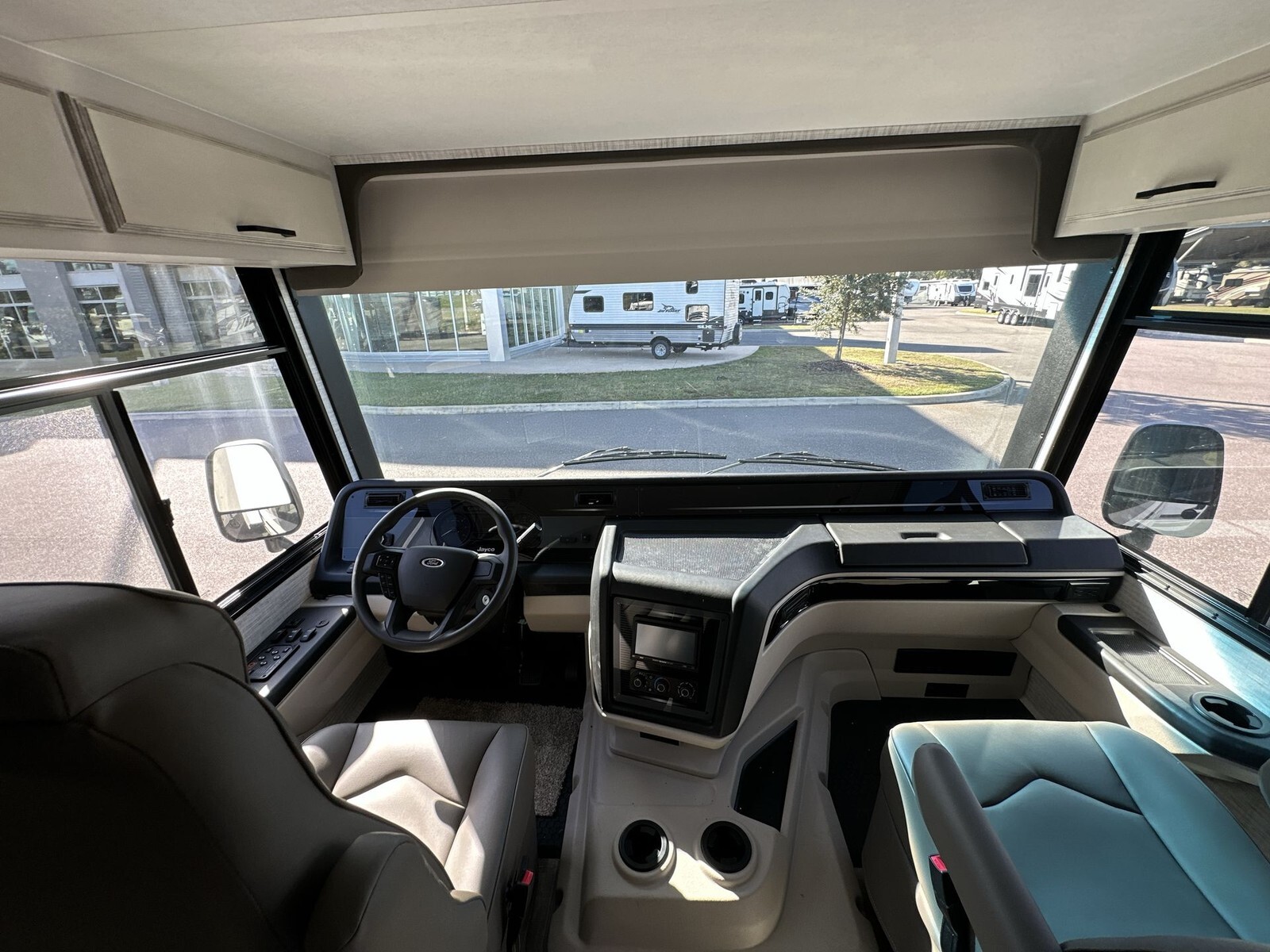 The exterior of the 29F features a sleek design with clean lines and a durable, weather-resistant finish, ensuring it remains attractive throughout your journeys. Built on a FordĀ® F53 chassis, it is powered by a 7.3L V-8 335 HP engine with 468 ft.-lb. torque, providing a smooth and reliable driving experience. The 120-inch panoramic windshield offers an unobstructed view of the road, enhancing safety and enjoyment.