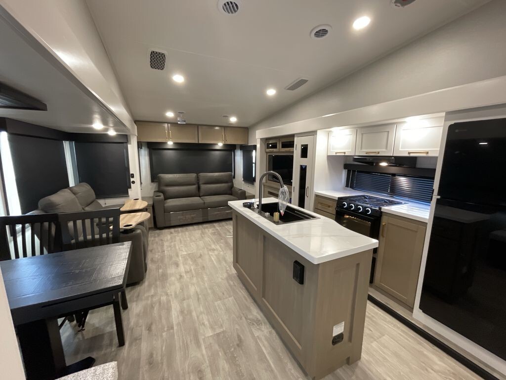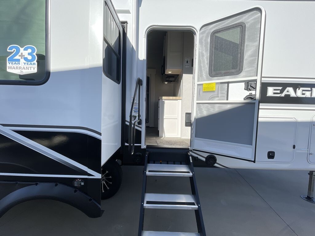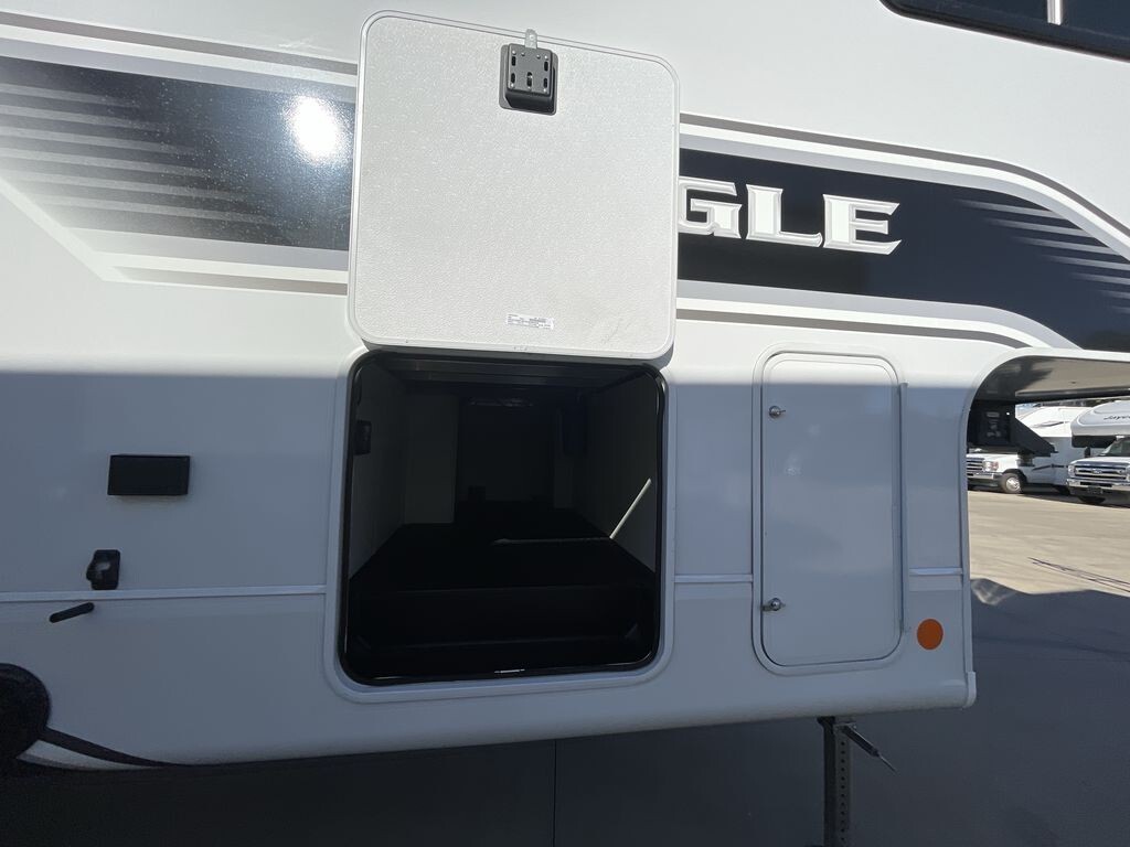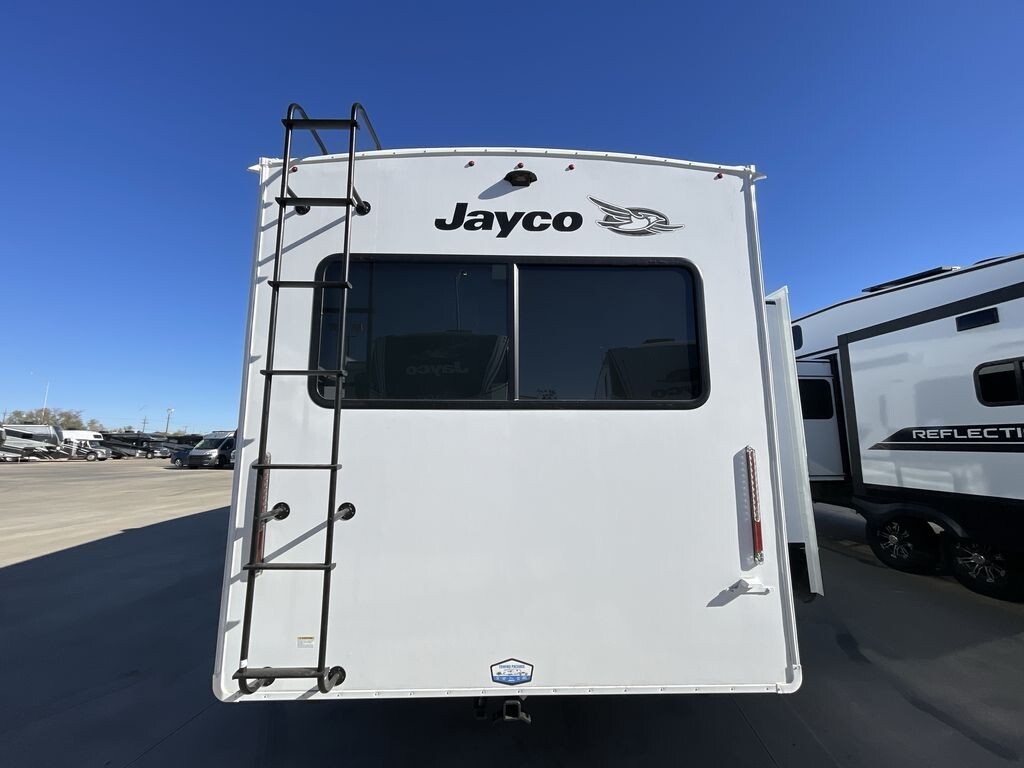The 2024 Jayco Eagle HT Fifth Wheel, model 29RLC, offers a comfortable and enjoyable travel experience. Crafted by Jayco, a trusted name in RV manufacturing, this fifth wheel combines quality construction with modern features to enhance your adventures.The 29RLC features a thoughtfully designed floor plan that provides a spacious and inviting living area. Measuring 34 feet 1 inch in length, it offers ample room while remaining easy to tow. The living space includes plush seating options, such as a tri-fold sofa and theater seating, ideal for relaxation or entertaining guests.The kitchen is equipped with modern appliances, including a large refrigerator, three-burner stovetop, and microwave, allowing you to prepare meals with ease. Ample cabinetry and solid-surface countertops provide plenty of storage and workspace.Entertainment is well-supported with a large LED HDTV and a premium sound system, creating an enjoyable