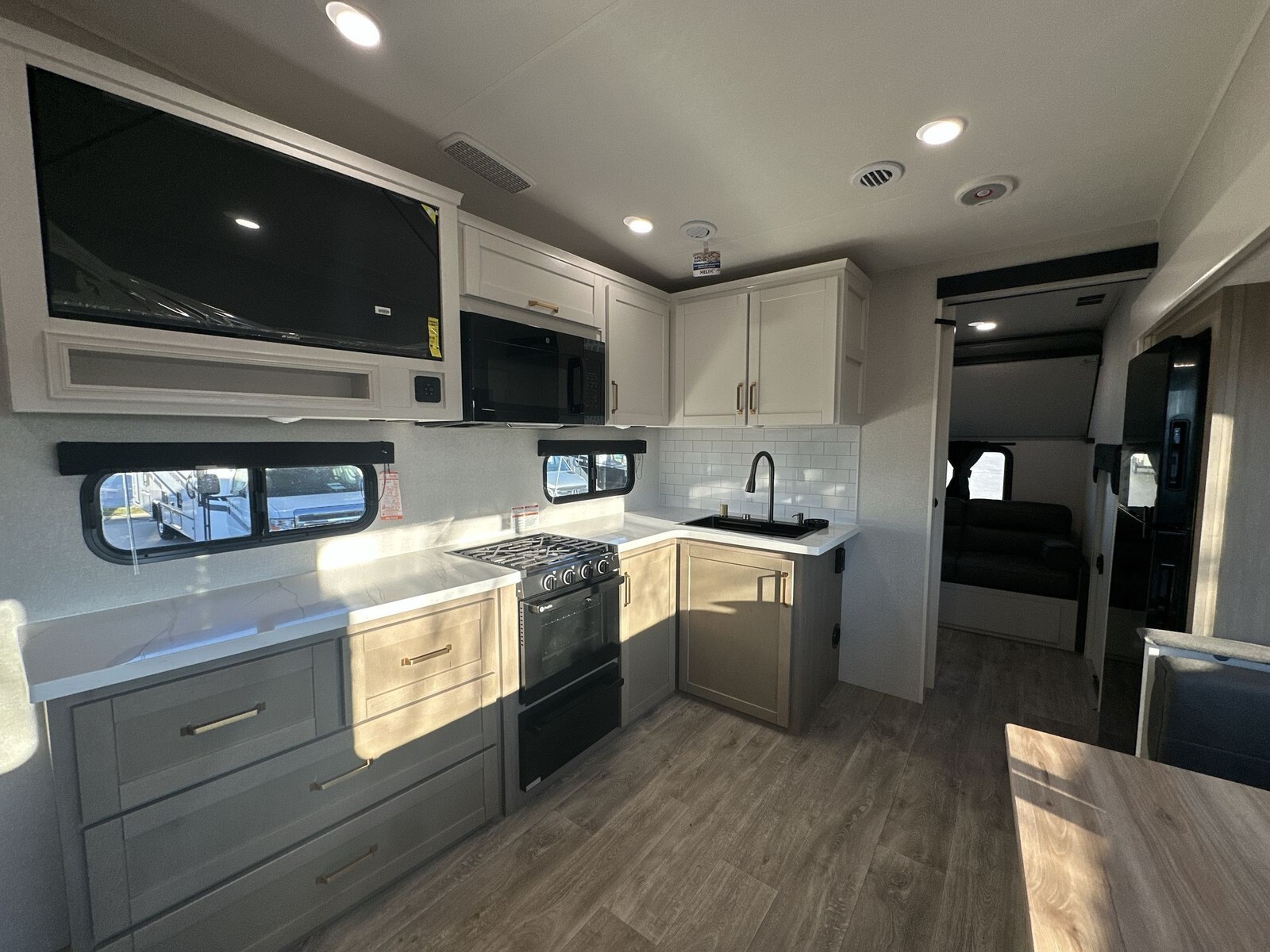 Inside, the 31QCD provides a spacious and inviting atmosphere. The open floor plan connects the living area to the kitchen and dining space, making it ideal for family gatherings or entertaining friends. Comfortable seating and high-quality furnishings create a cozy living area, perfect for relaxing after a day of adventure.