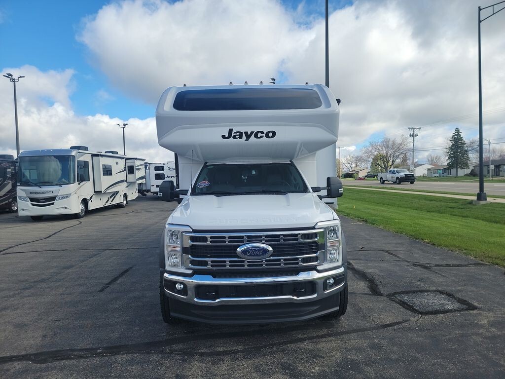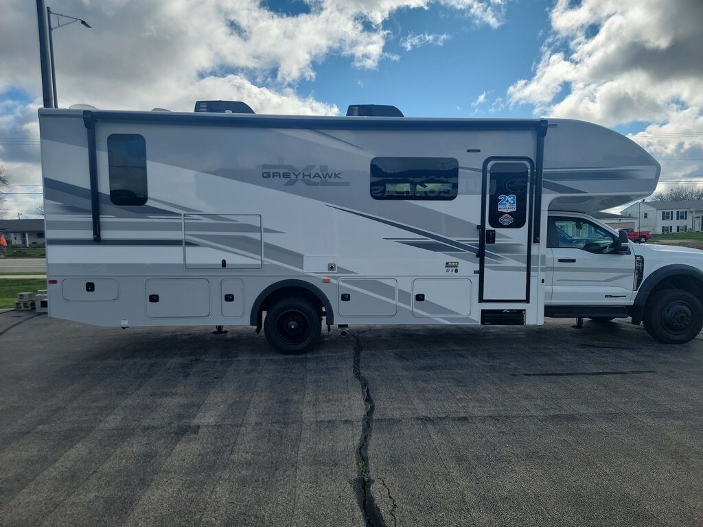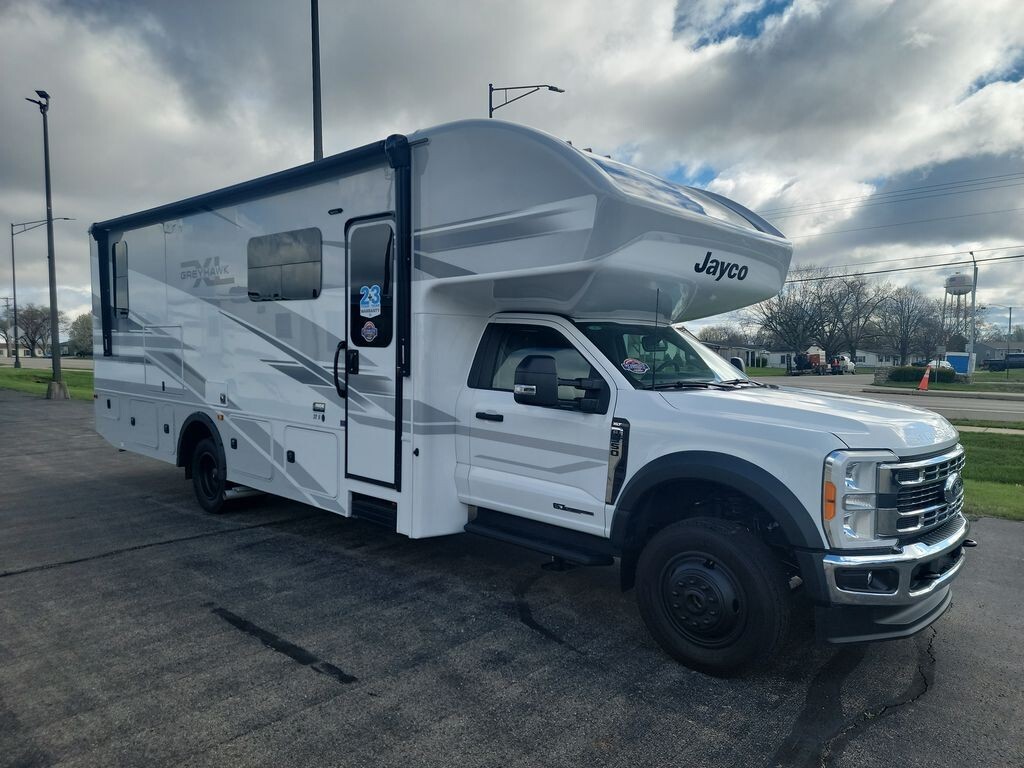 Introducing the 2024 Jayco Greyhawk XL 32U, a Super Class C motorhome that combines comfort and capability for your adventures. Built on the FordĀ® F-550 4X4 chassis, it features a 6.7L Power Stroke V8 Turbo diesel engine delivering 330 horsepower and 950 ft-lb of torque, ensuring a smooth and powerful ride.The Greyhawk XL 32U offers a spacious interior with an 84-inch ceiling height, providing ample room for relaxation. The living area includes a comfortable dinette and a plush sofa, perfect for dining and unwinding. The modern kitchen is equipped with a 10 cu. ft. 12V refrigerator, FurrionĀ® all-in-one cooktop and oven, residential-size microwave, and a recessed stainless steel sink with covers, making meal preparation convenient. The rear bedroom features a walk-around king-size bed with a bedspread and nightstands, offering a restful retreat. The bathroom includes a shower with a decorative surround, glass door, skylight, and