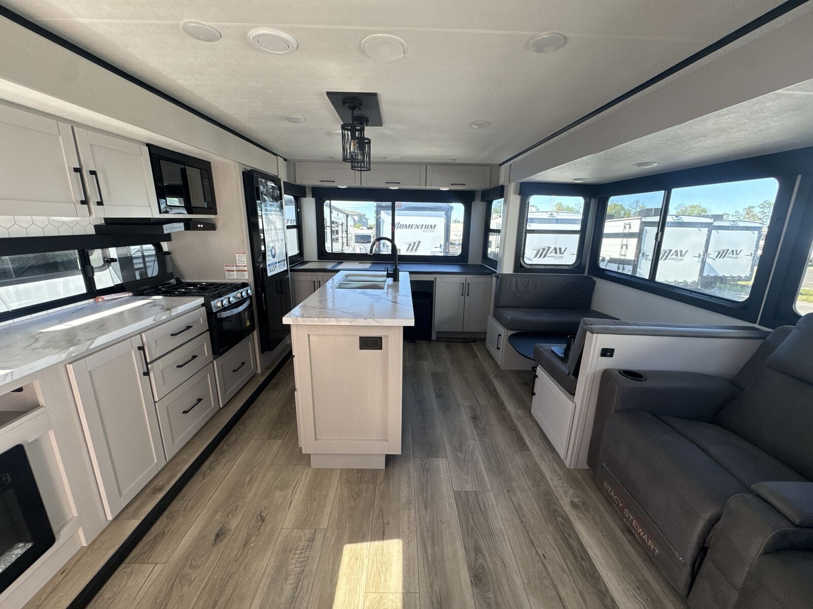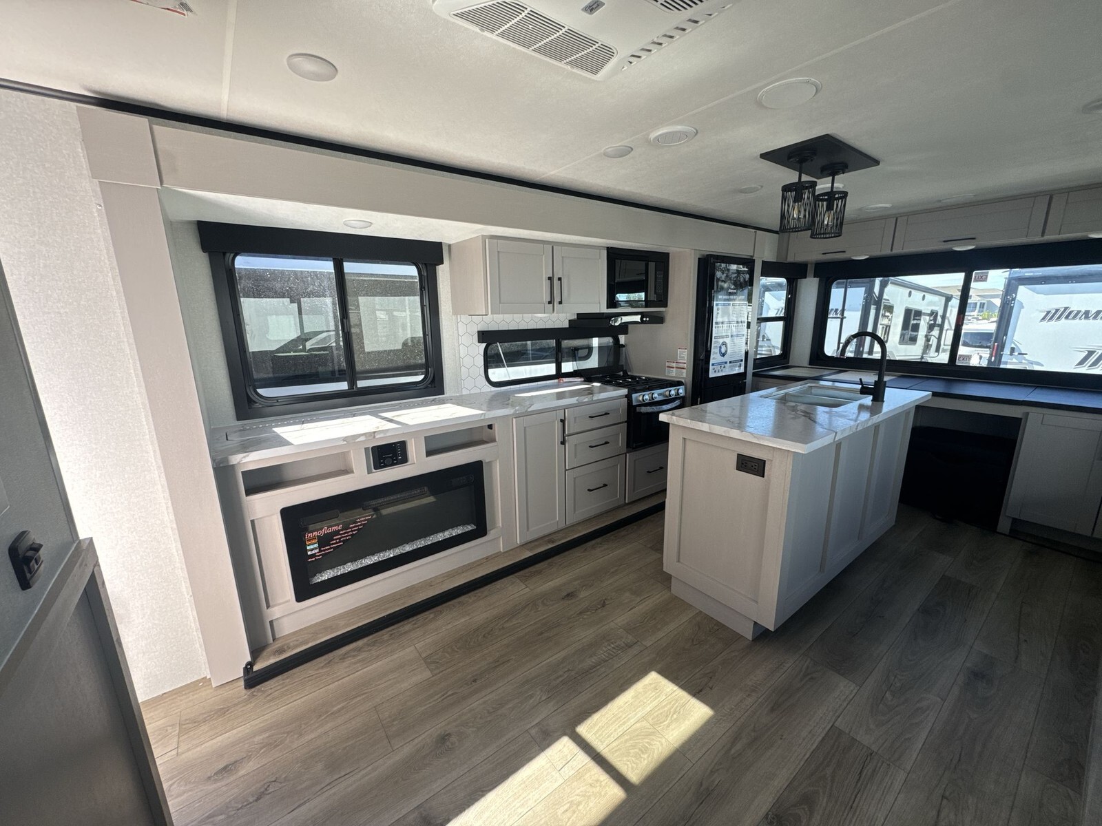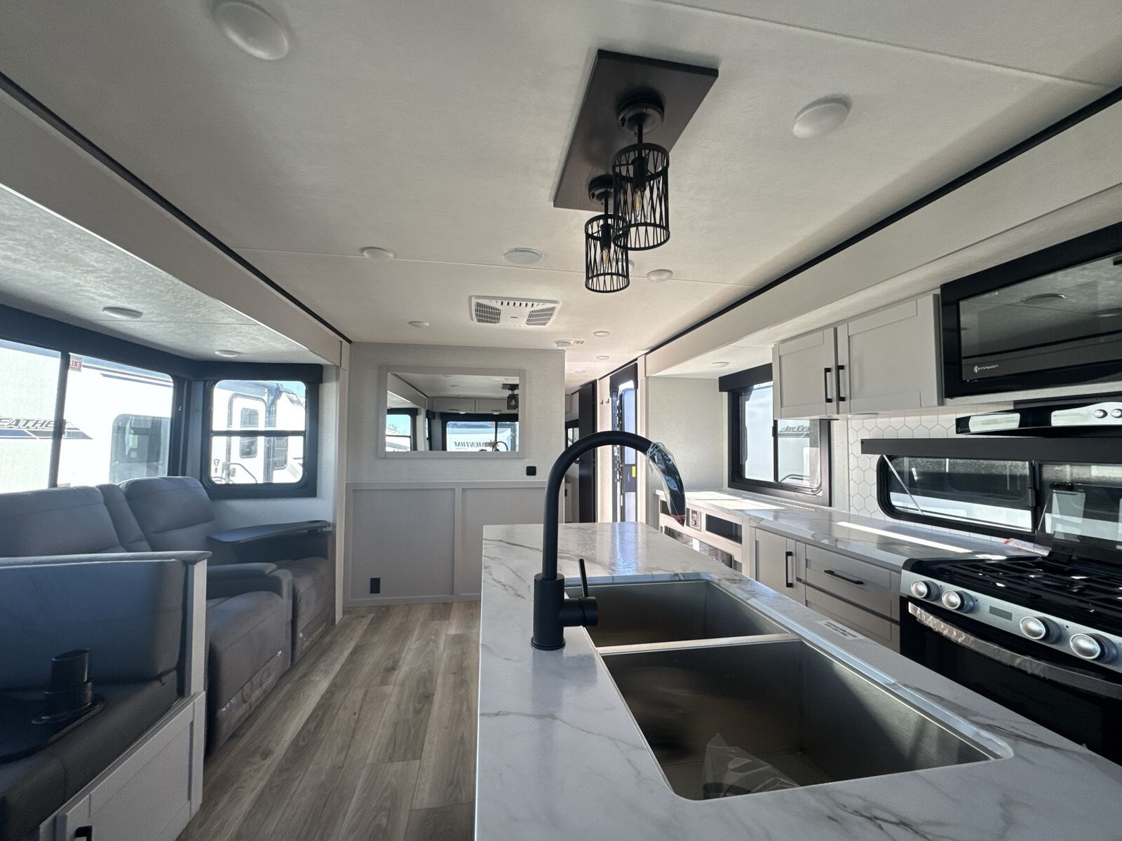 Inside, the 27MK maximizes space to ensure a comfortable living environment. The open floor plan includes a cozy sofa and an entertainment center, perfect for unwinding after a day of exploration. The kitchen is equipped with modern appliances,