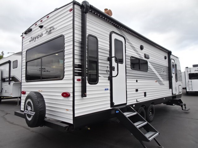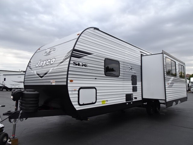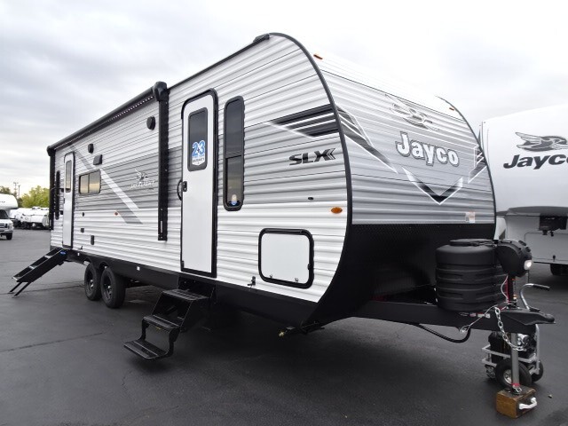 CLICK HERE FOR VIDEO TOURLeave the stress behind and hit the open road with confidence. For over 20 years, Jay Flight has been America’s best-selling travel trailer, trusted by countless families to deliver comfort, quality and adventure. The Jay Flight SLX Travel Trailer carries that legacy forward, designed for effortless travel—whether you're chasing sunsets at the beach, escaping to the mountains or finding solitude in the forest. Compact yet packed with premium features, it makes every journey feel like home.The Jay Flight SLX Travel Trailer is built for easy setup, spacious comfort and rugged durability—so you can spend less time worrying about logistics and more time making memories. With an oversized freshwater tank—up to 25% larger than the competition—you can camp longer without worrying about refills. Western-built models go even further with 76 or 80 gal. capacities, all reinforced with rugged steel bars, not flimsy aluminum straps.Whether you're bringing the family or just extra gear, industry-leading bunk weight capacities (300 lbs. for single bunks, 600 lbs. for doubles) mean you can sleep soundly or store your essentials with confidence.Inside, you’ll find solid hardwood cabinet doors with hidden hinges, giving the space a modern, residential feel. Oversized cabinets and under-bed storage ensure there’s room for everything you need, while the lit exterior passthrough storage makes packing and unpacking a breeze.After a long day of exploring, step inside to enjoy instant hot water from the on-demand tankless water heater—up to 60,000 BTU in standard models and 42,000 BTU in the Sport Edition—so you can clean up comfortably, just like at home. Oversized G20 dark-tinted windows flood the space with natural light while blocking heat and UV rays, giving you both stunning views and added privacy.The Jay Flight SLX is more than just a travel trailer—it’s your home on the road, built for adventure, comfort and convenience in every mile.
