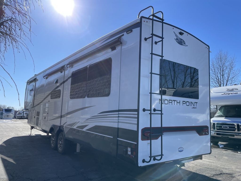 The 2025 Jayco North Point 381CKRE is a fifth-wheel RV designed to provide comfort and convenience for travelers. Built by Jayco, a well-known name in the RV industry, this model offers a range of features to enhance your journey.