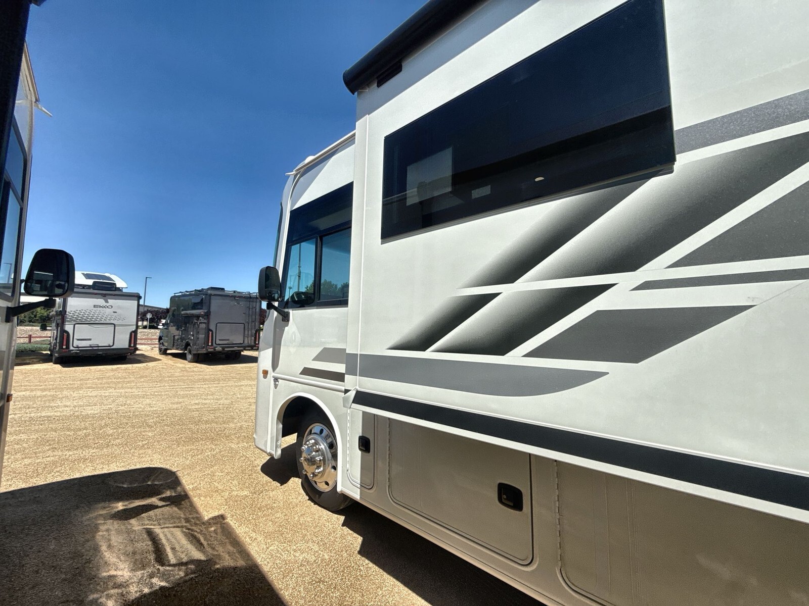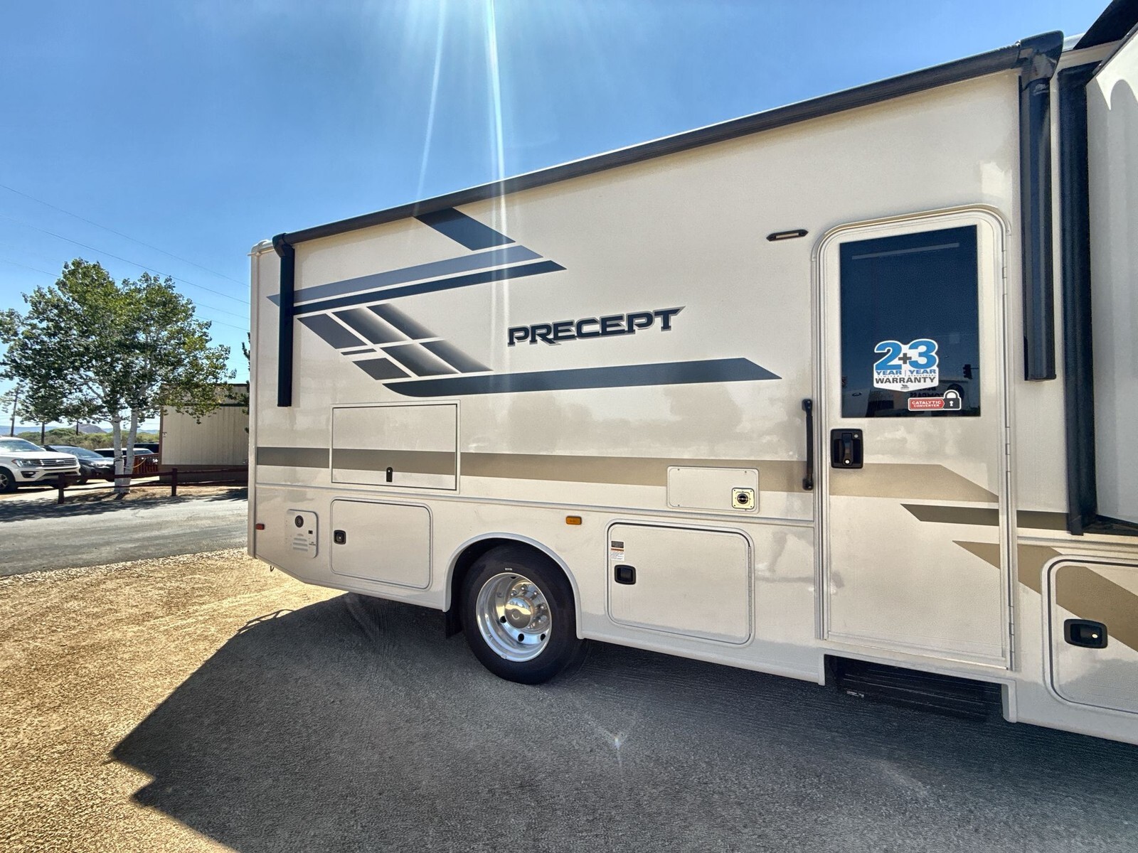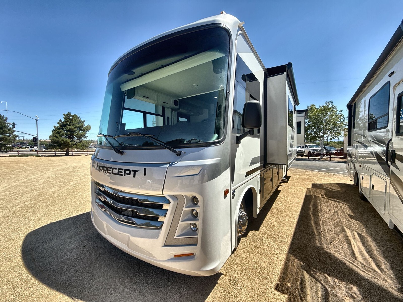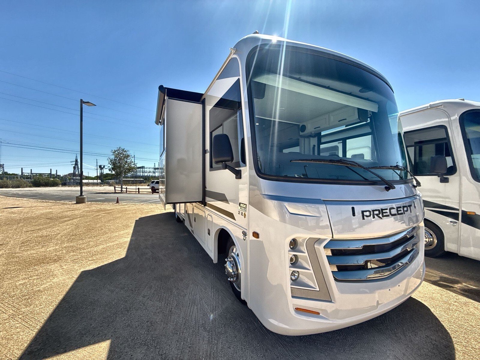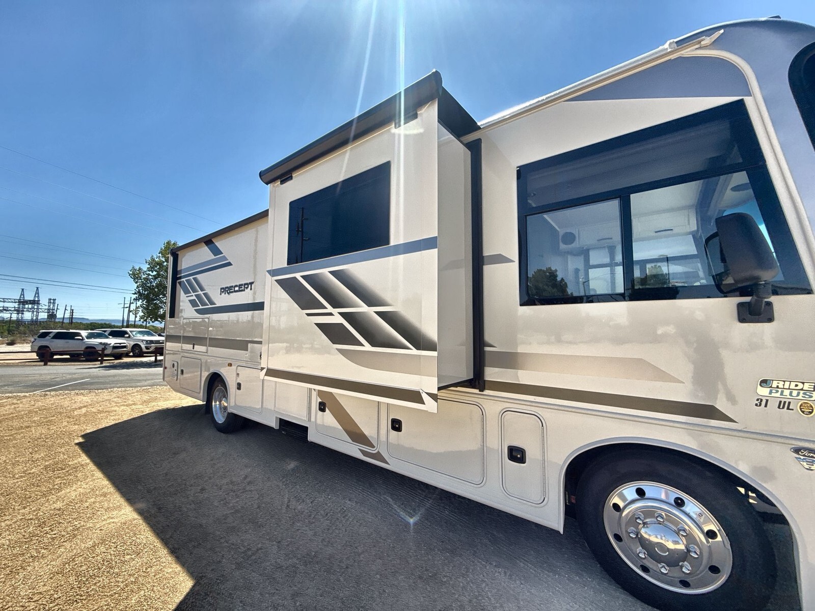 The 2025 Jayco Precept 31UL is a top choice for those seeking a comfortable and reliable Class A motorhome. Built on a sturdy Ford F53 chassis and powered by a 7.3L V8 engine with 335 horsepower, it ensures smooth and powerful performance on the road. Measuring 33 feet in length, the 31UL offers a spacious interior designed for relaxation and convenience. The living area features a comfortable sofa and a dinette, perfect for meals and socializing. The kitchen is equipped with a residential-size refrigerator, a three-burner cooktop, and a microwave, making meal preparation easy and enjoyable. The master bedroom includes a queen-sized bed with ample storage, including overhead cabinets and a wardrobe. Additional sleeping options are available with the convertible sofa and dinette, accommodating up to seven people comfortably. Advanced technology enhances the travel experience in the 31UL. The Firefly total coach control system with