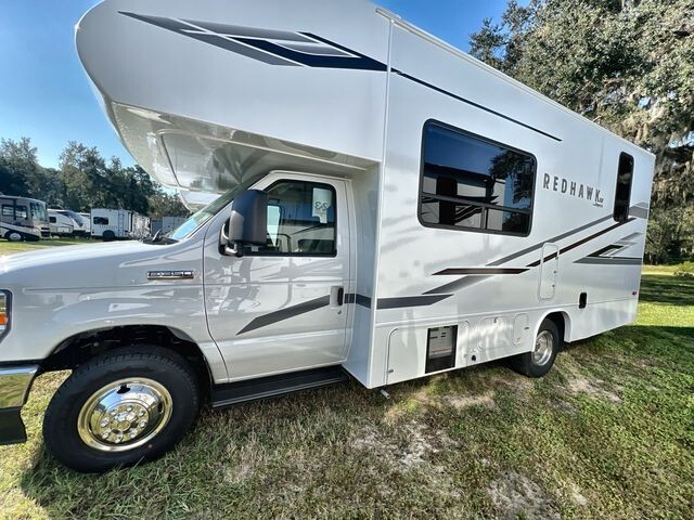 The 2025 Jayco Redhawk SE 22EF is a well-crafted Class C motorhome designed to provide comfort and convenience for both seasoned travelers and those new to the RV lifestyle. Built on a reliable Ford E-350 chassis, this motorhome is powered by a 7.3-liter V8 engine delivering 325 horsepower and 450 ft-lbs of torque, ensuring a smooth and powerful driving experience.