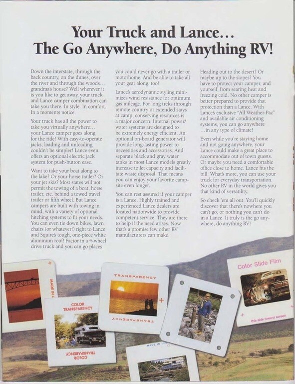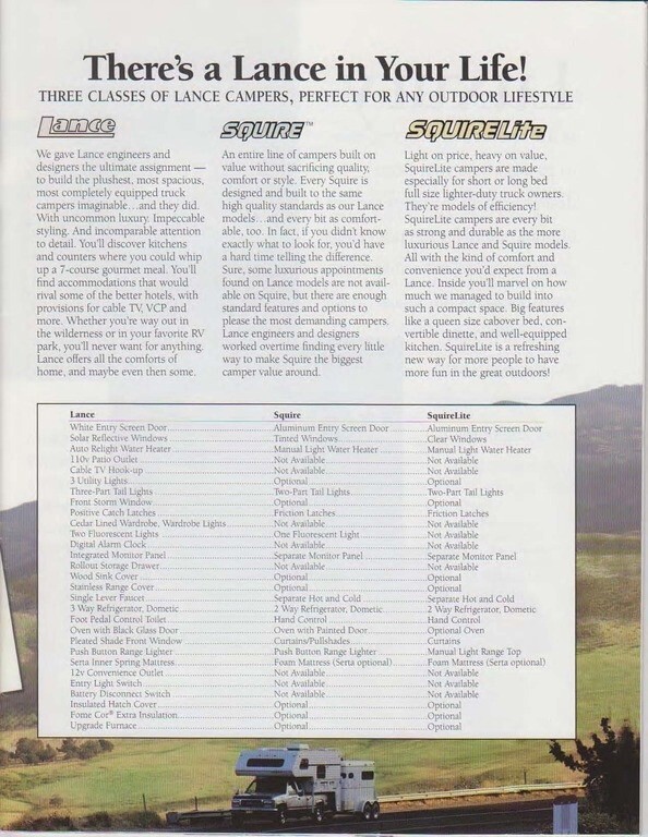 Note: Brochure is for a 1995 Lance. Ours is a 1994 Lance.