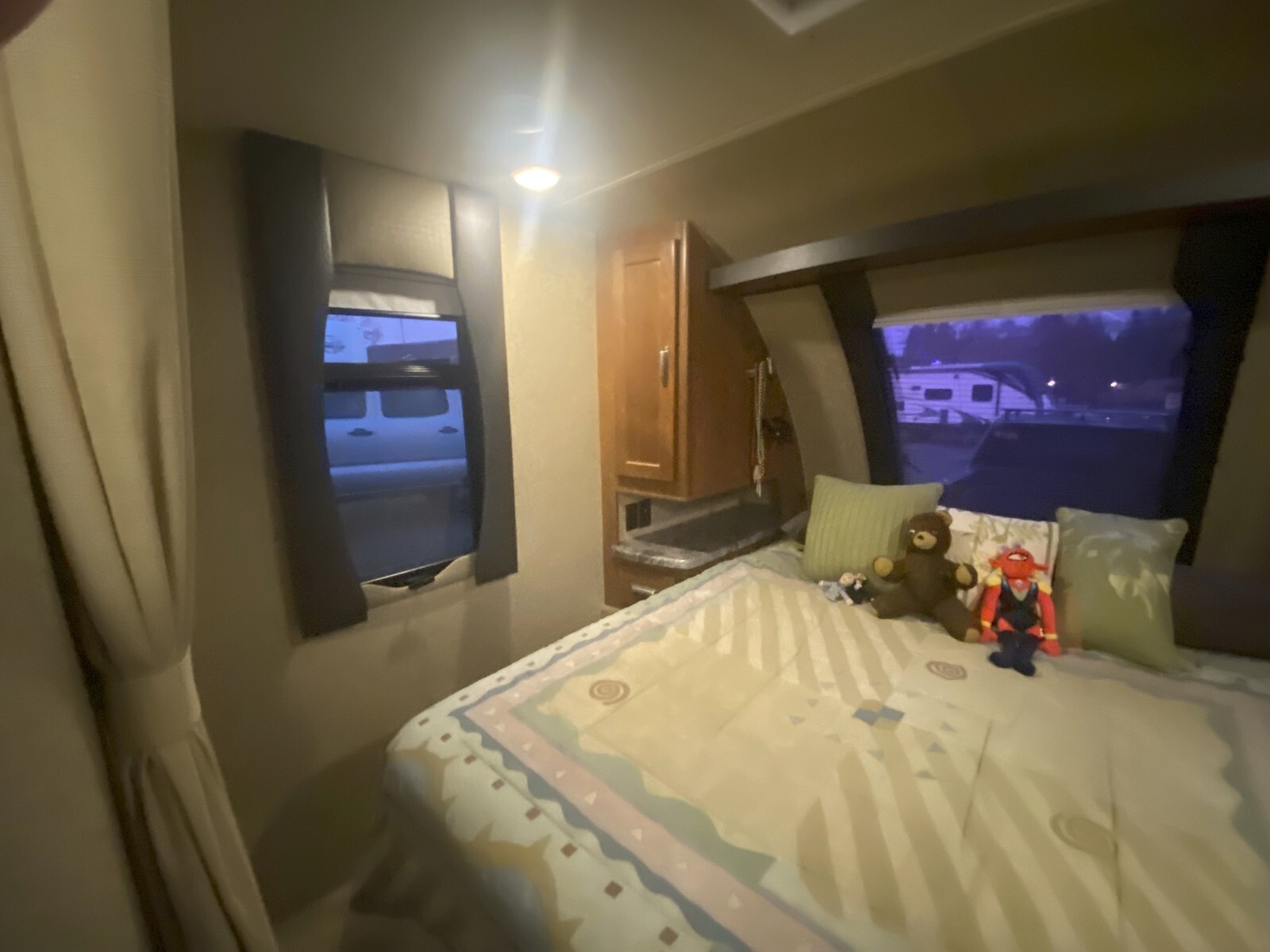 Will sell with a number of accessories and road necessities; water filters, tongue lock, TRAILER COVER!, 3 smart ceiling fans, slide out tray for front storage compartment, lots of AC power cable and sewer extensions, Hughes Autoformer power surge and conditioner. Bathroom/ black tank supplies. Wheel chocks, lego and ramp leveling accessories. Road appropriate dish and glass ware, barbecue grill sized to fit storage tray are available if desired pricing negotiable. Clean ownership with pink slip. Contact Bob for original sticker detail with add-ons. Can deliver within 400 miles for a price if desired.