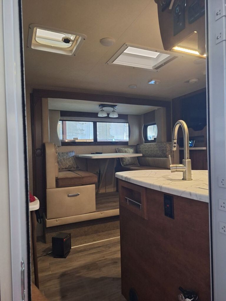Lance is known for top-tier build quality and four-season capability, and the 2375 is one of the most sought-after floorplans theyve ever produced. The spacious super slide opens up the living area beautifully, featuring a versatile dinette with pull-out drawers and large end windows that flood the space with natural light. Interior LED lighting and skylights enhance the bright, modern feel throughout.