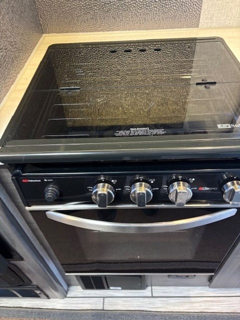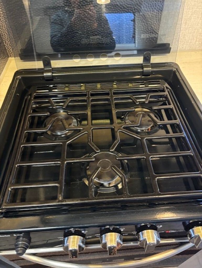 3-burner stovetop, oven, microwave