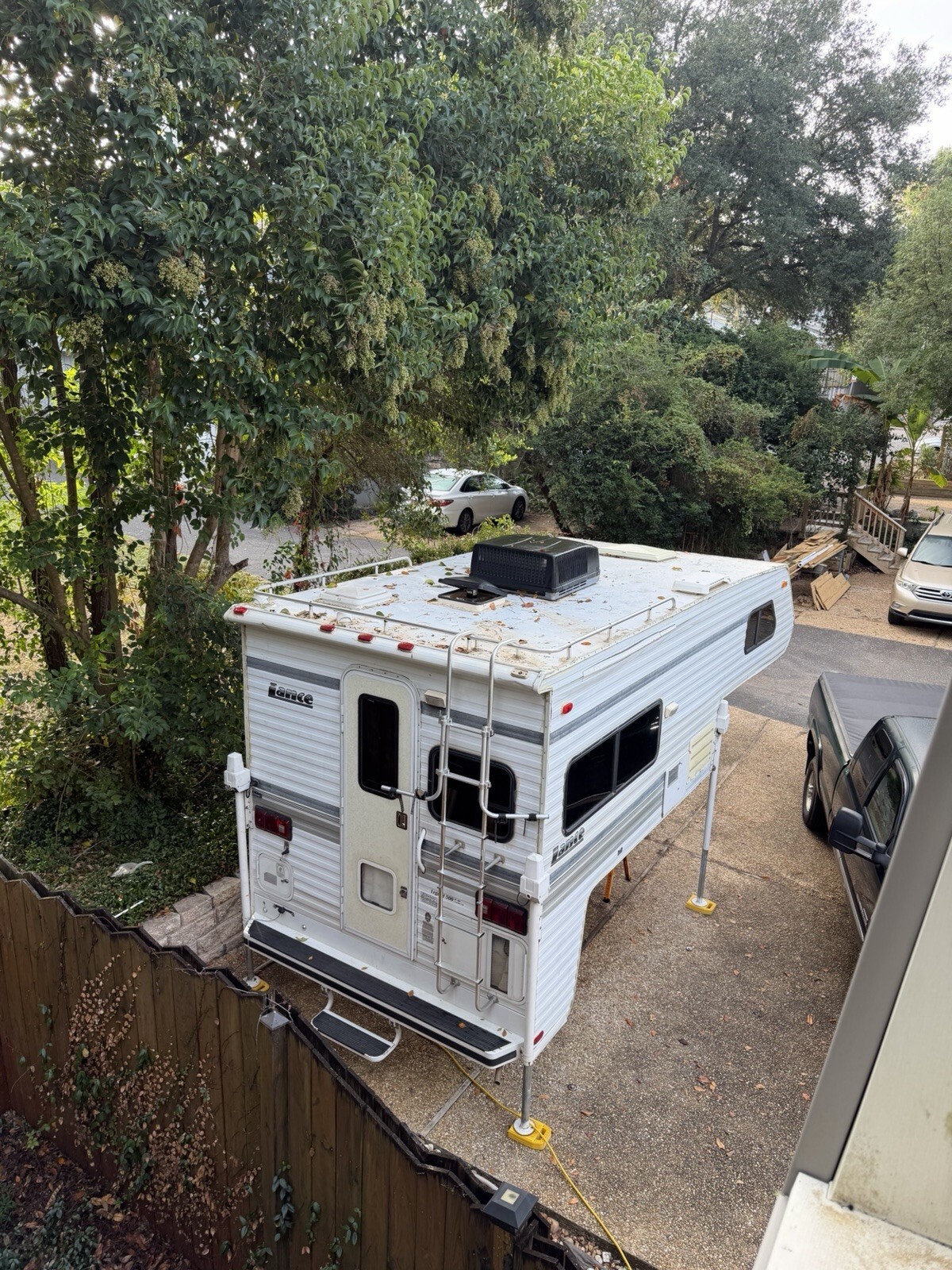 Lance Legend Slide In Truck Camper.This camper is structurally sound. Some minor cosmetic refurbishment remains to make it pristine, it’s not serious. All of the appliances work. It has propane powered: stove, oven, refrigerator, furnace, hot water and propane powered electric generator. Queen size bed. Freshwater tank, grey water and sewage tanks, bathroom and shower. Electronics have recently been replaced on hot water heater and refrigerator and furnace. LP, gas and carbon monoxide detectors have been replaced. The camper will require a full 8 foot long truck bed/pick up. Three-quarter ton or one ton. If the ad is still listed, the camper is available. Pick up only or local delivery in North Florida. It’s a California camper.