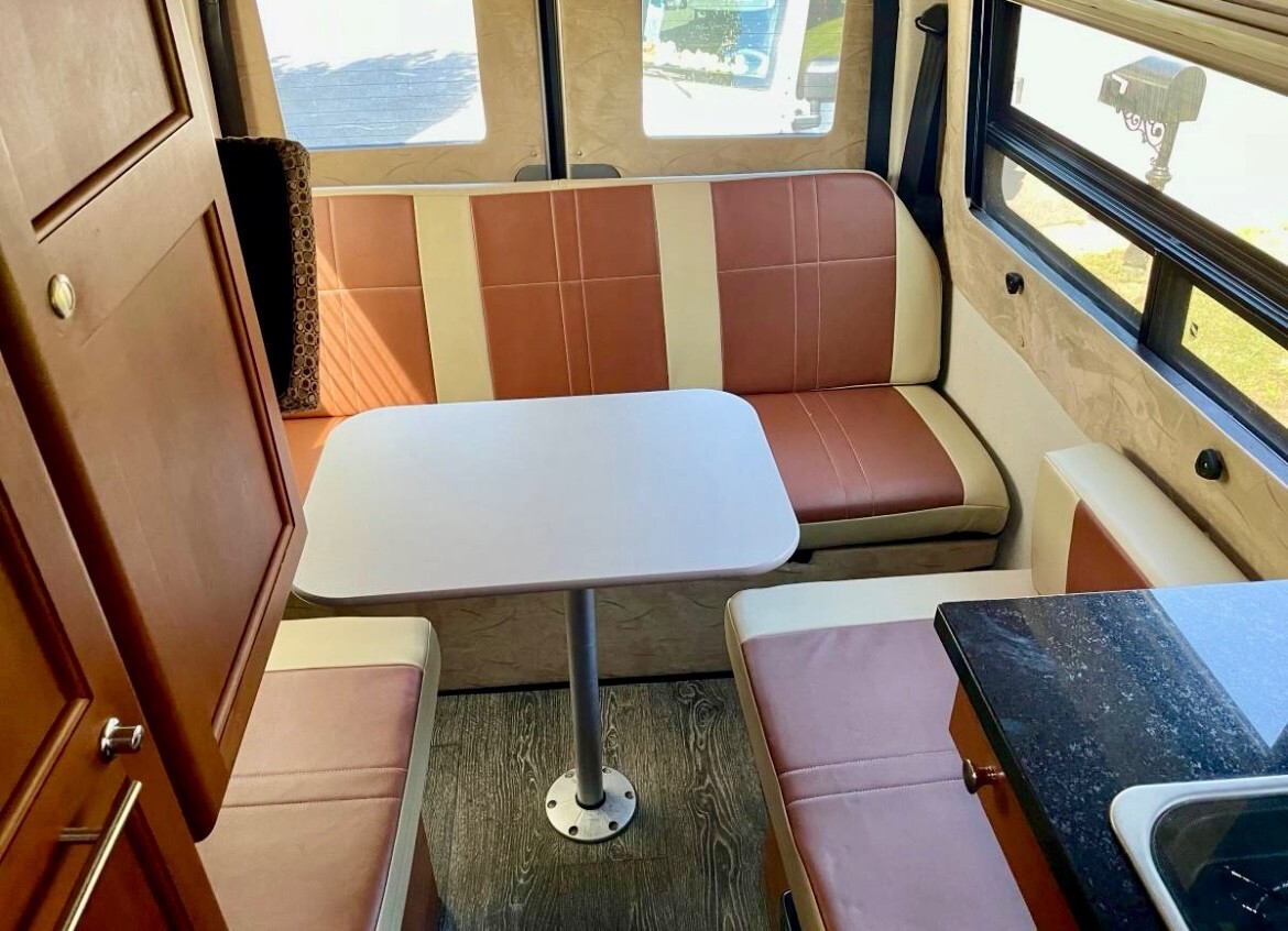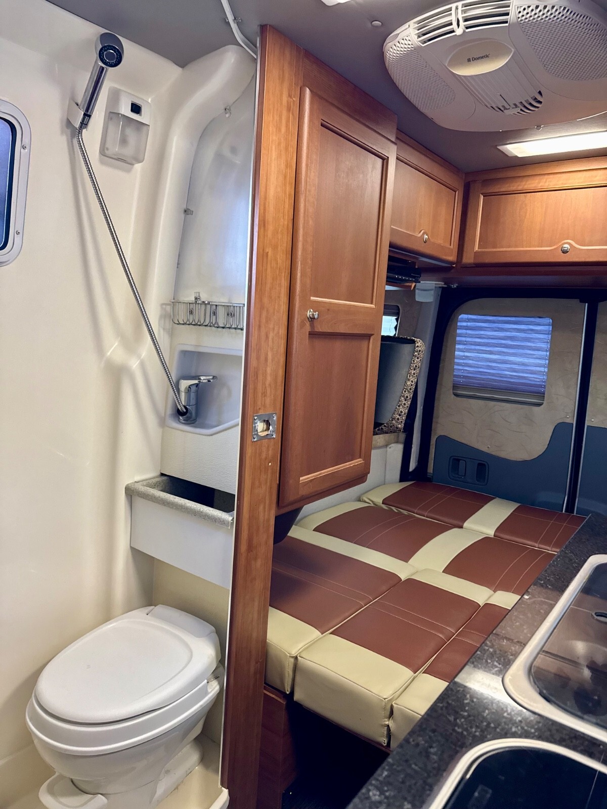 The interior of the Roadtrek Ss Agile is well-designed and utilizes every inch of space efficiently. The layout includes a kitchen area with a stove, refrigerator, and sink, as well as a bathroom with a toilet and shower. The king size bed sleeping area can be sofa and converted from a dining area, providing a comfortable place to rest after a long day of exploring.