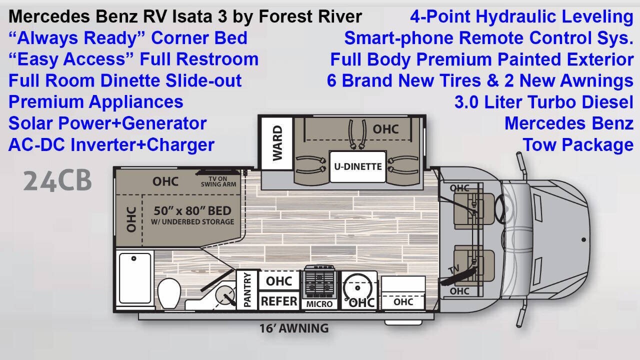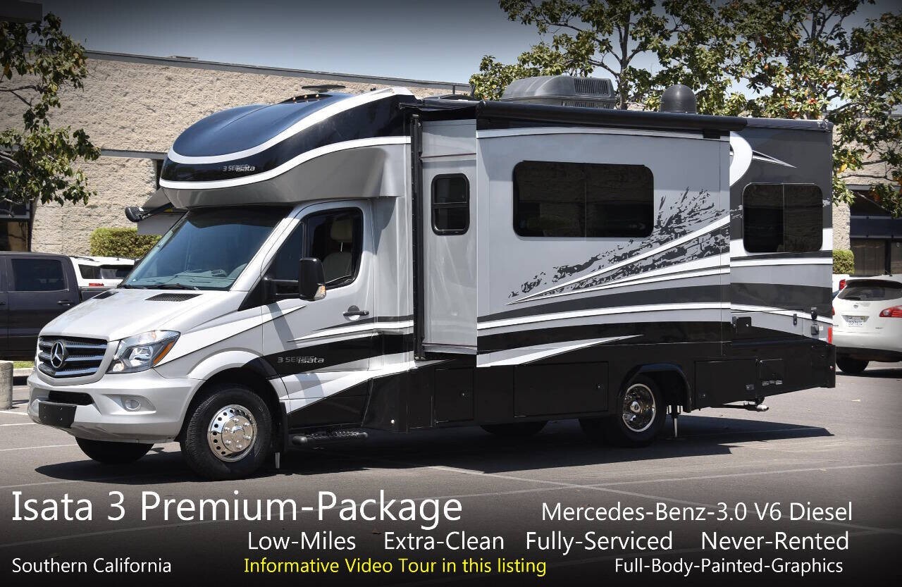Ultra-Premium Mercedes Benz Turbo-Diesel Motorhome. Body Built By Forest River as Dynamax Isata 3 This one looks and feels new. If you want a great pride of ownership experience then this is camper one you want to focus on. This one is equipped with more rare and premium high-end Features, also it has been well maintained and is in ready-to-go-today fully serviced and in operational status with no deferred-maintenance! Highlights including: * Factory Fully Painted Clear-Coated Advanced Graphics aka Full Body Paint. * 4-Point Hydraulic full-Auto Leveling Jack system * Awnings Refreshed with new Fabrics professional installed.* Fresh-Preventive Service of roof, walls Water system Sealed against water leaks or future damage risks. * 6 Brand-New Tires for safe Travels at up to full 83mph Speed Capability. * Fully Waxed Detailed inside and out * Solar Power system installed and operating Be alert that Most other RVs are sold