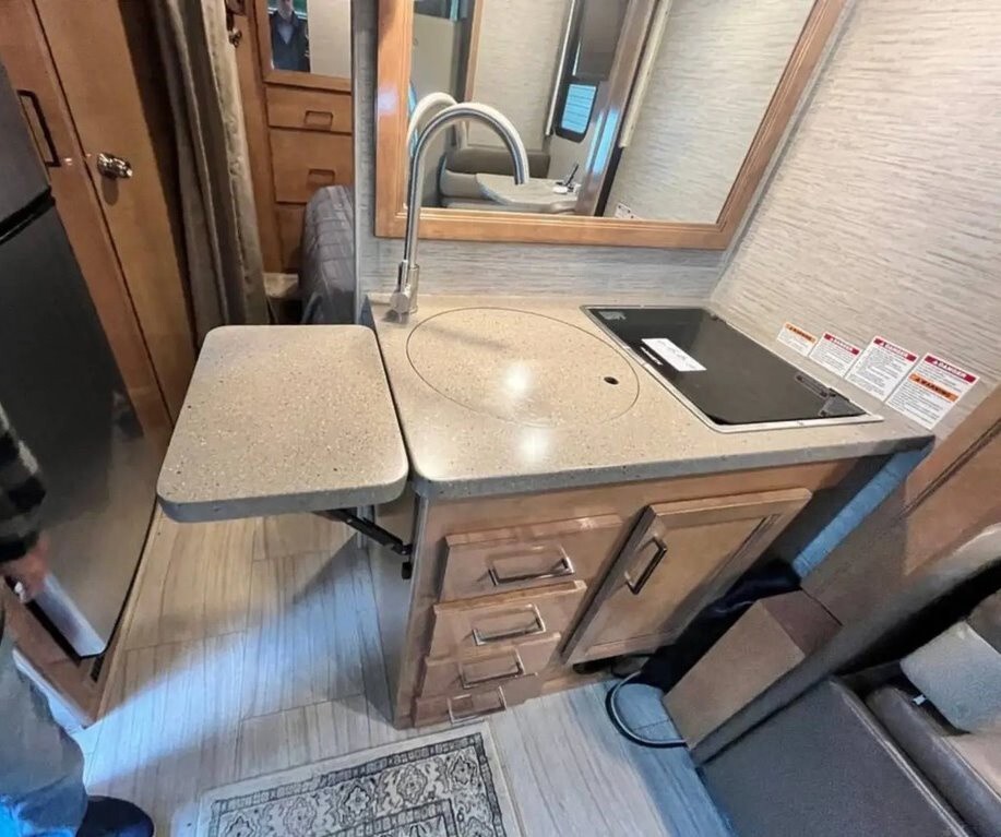 2021 Thor Motor Coach Quantum Sprinter CR24 Class C RV For Sale in Centereach, NY 11720 This Thor is powered by a 3.0L V6 engine and a 7-speed automatic transmission with 8,434 miles. The overall length is 25.67 feet, and it comes equipped with 2 power-retractable slide-outs with toppers, a 16-foot power awning with LED lighting, 1 A/C unit, an Onan generator, a solar panel, and room to sleep up to 6. This unit has been well-maintained. Kitchen/Living Area Features Flip-Up Countertop Extension 2-Burner Stovetop with Cover Overhead Fan Convection Microwave Mid-Size Fridge/Freezer