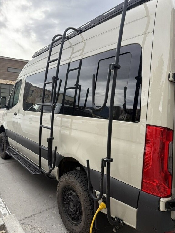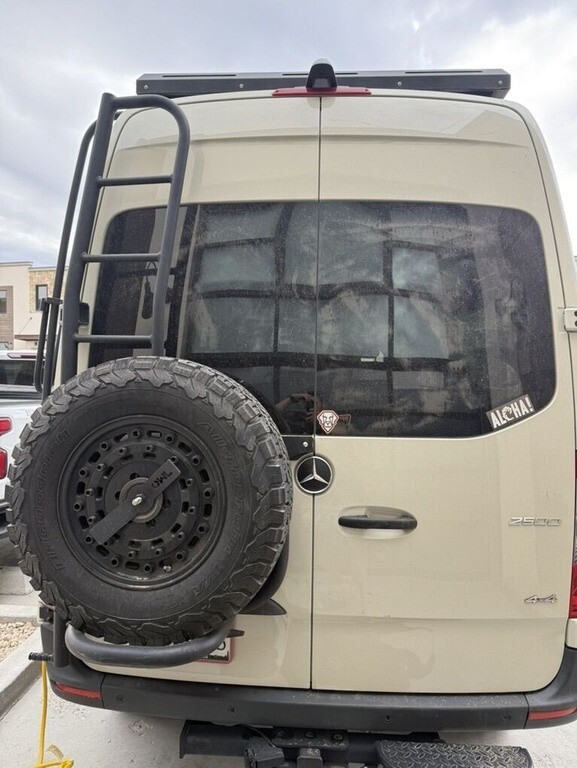Rear Ladder: Owl Van Sprinter Ladder + Spare Tire Carrier with 180-degree Hinges