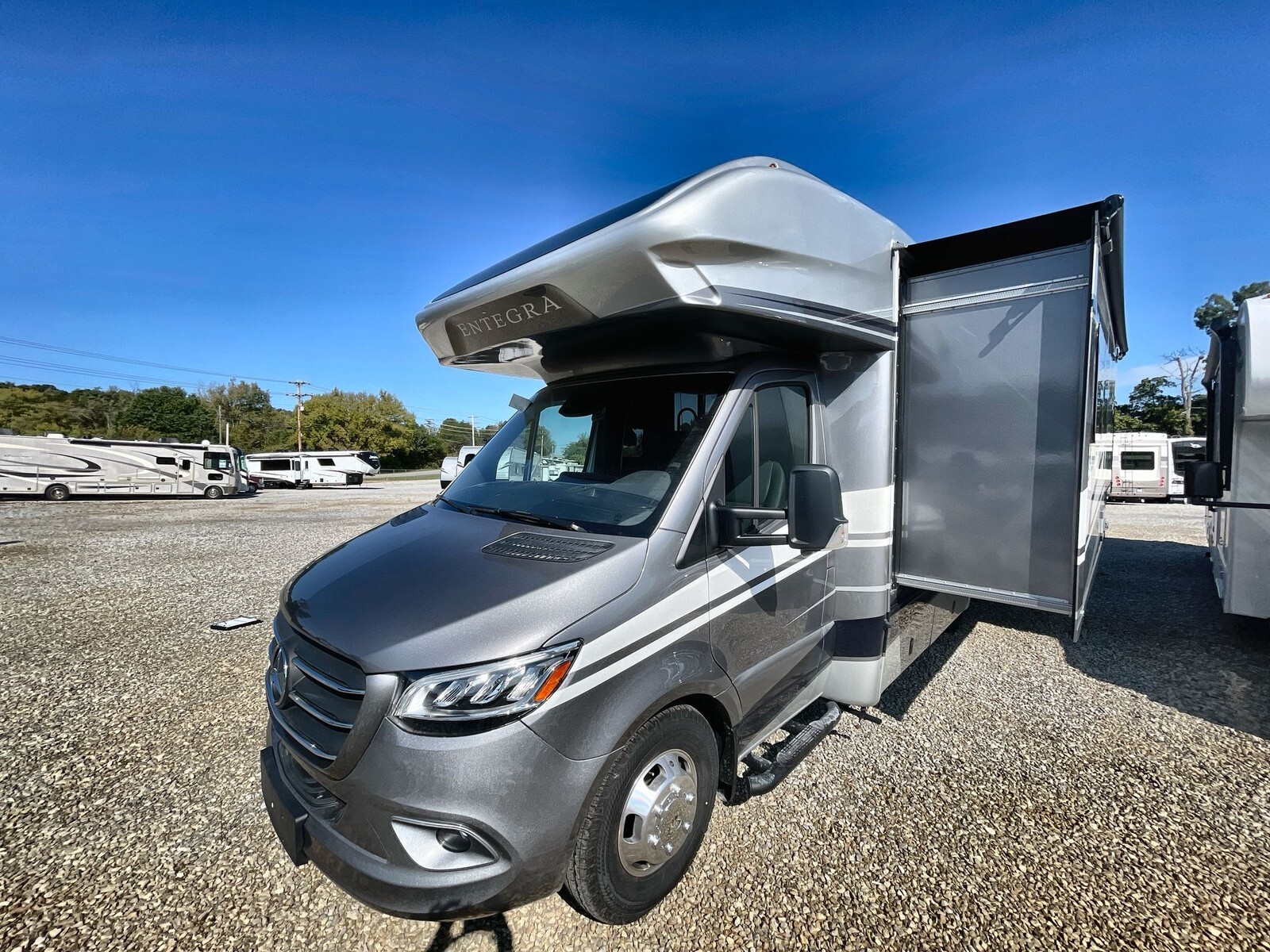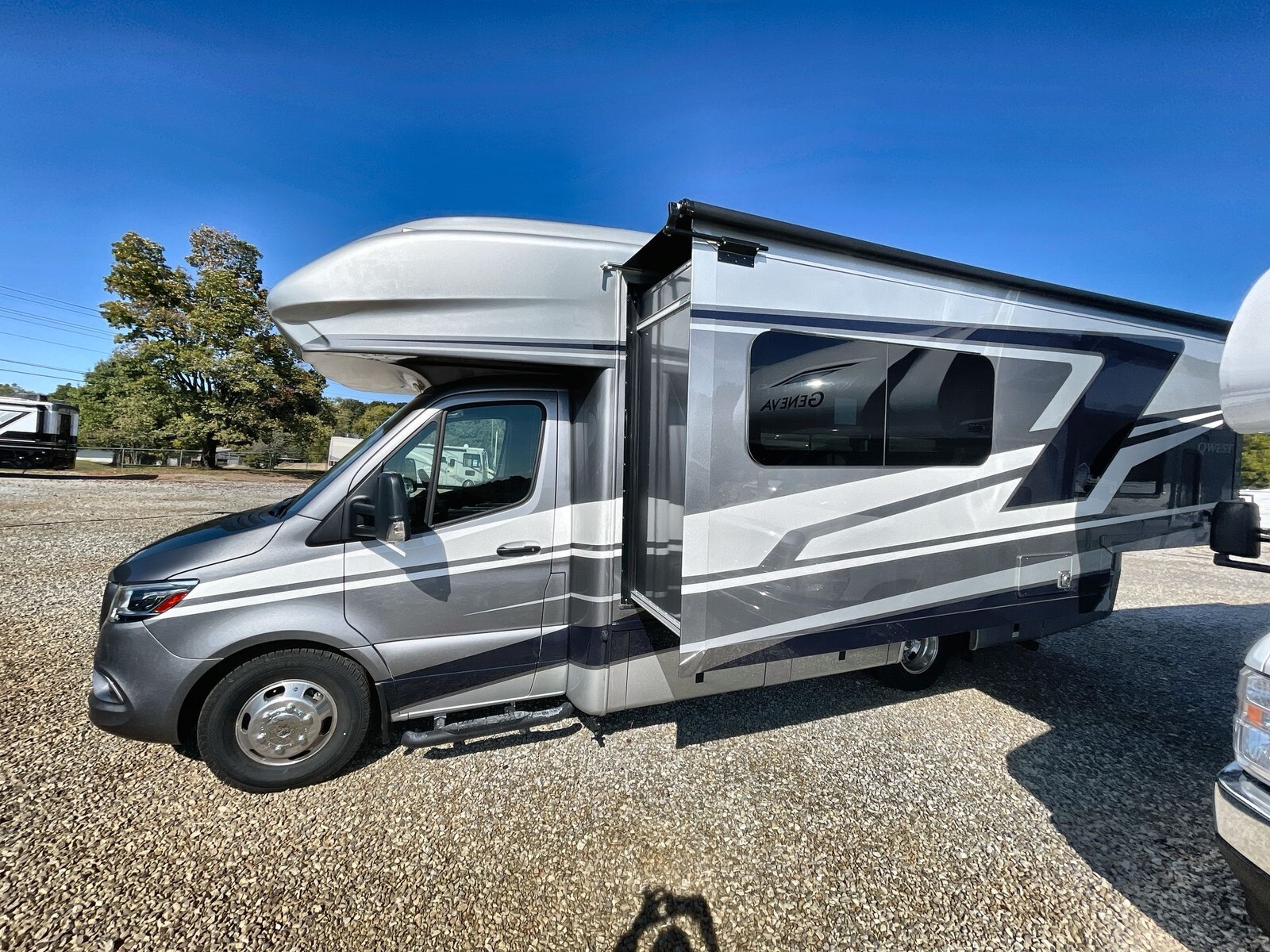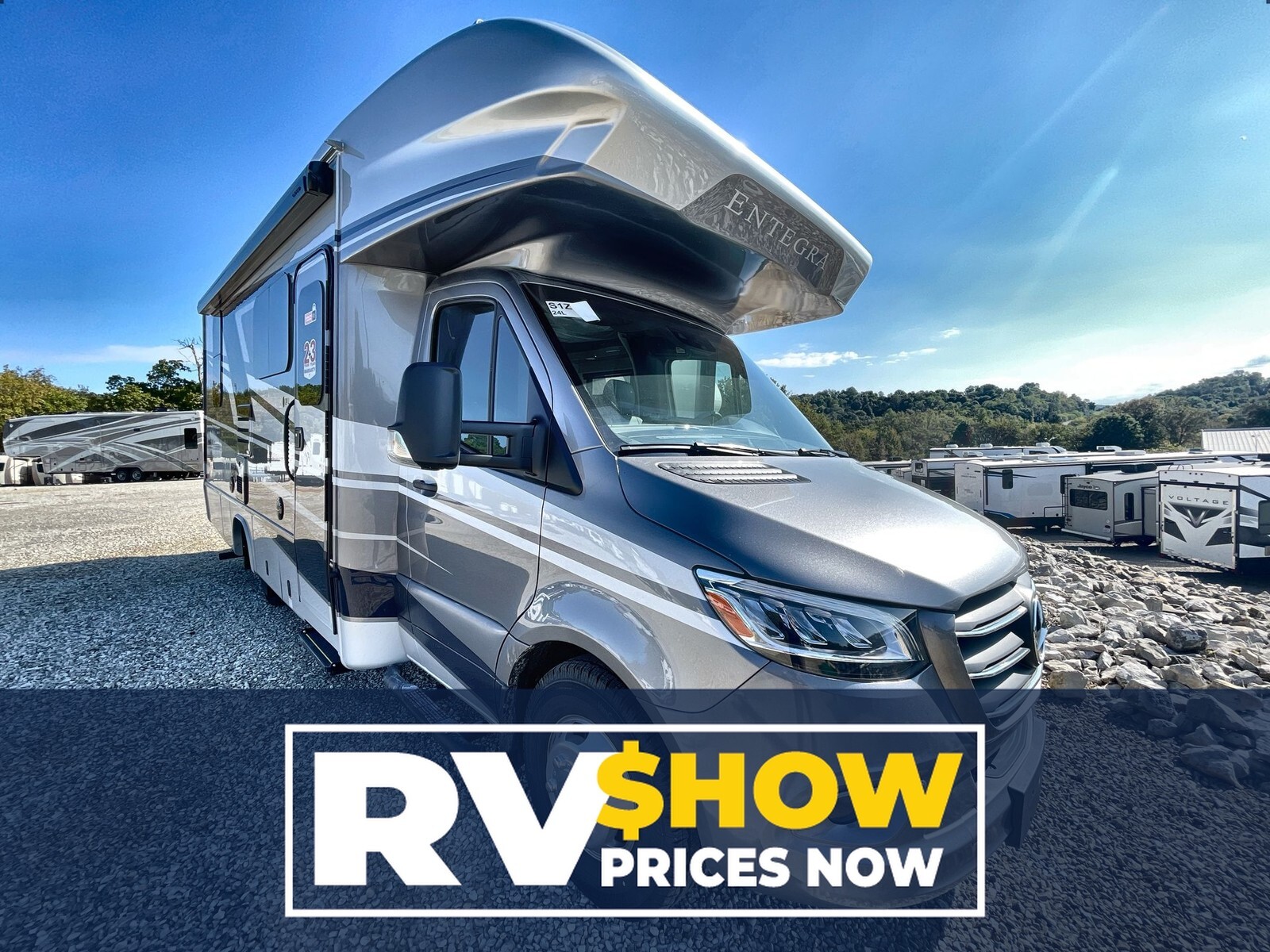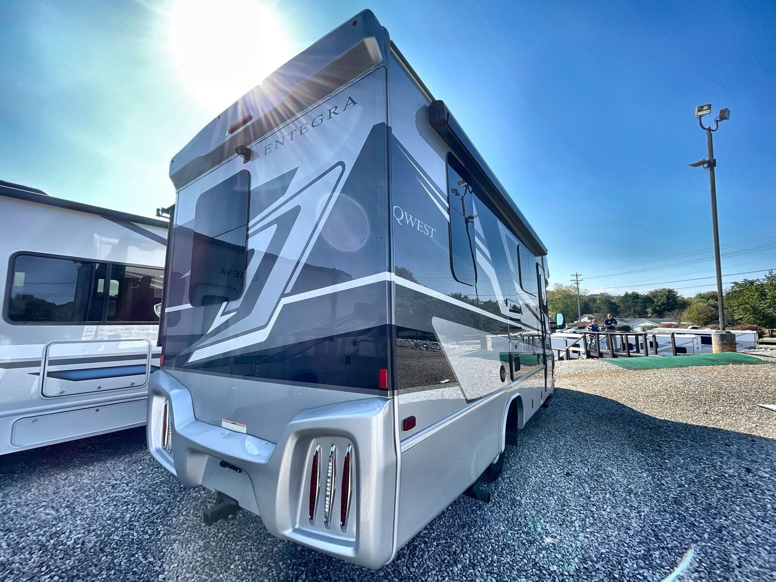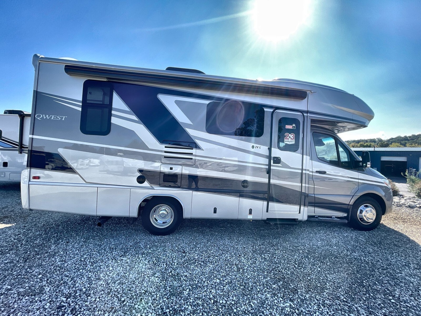 The 2025 Entegra Coach Qwest SE 24L is a Class C diesel motorhome that offers a comfortable and functional travel experience. Built on the reliable Mercedes-Benz Sprinter 3500 chassis, it features a 2.0-liter I4 diesel engine delivering 211 horsepower and 332 lb-ft of torque, paired with a 9-speed automatic transmission for smooth driving. Measuring 25 feet in length, 8 feet in width, and 11.42 feet in height, the 24L is easy to maneuver and park. Its aluminum body and fiberglass sidewalls ensure durability, while the 14-foot power retractable awning provides shade and outdoor comfort. Inside, the 24L accommodates up to six people with a queen-size bed, a convertible U-shaped dinette, and an overhead bunk. The kitchen is equipped with a two-burner cooktop, convection microwave, mid-size electric refrigerator, and solid-surface countertops. The living area includes comfortable seating and a high-definition LED TV with a premium
